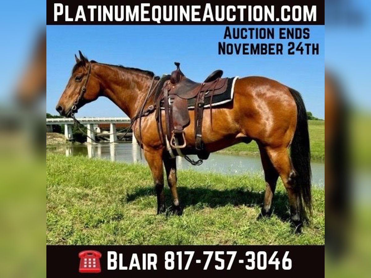 ONLINE AUCTION Place your bids at www.PlatinumEquineAuction.com Starting Bid $3500 Auction ends November 24th, 2024 Need a new saddle? Check out White Rock Saddles on our website or Facebook! Bo is a 12 yr old, 16H bay quarter horse gelding. The phrase built like a brick house, started when they saw this gelding. Bo is as stout as they come but he has the softest personality. He is an extremely GENTLE giant and is suitable for all ages and abilities! He was used on a ranch years ago and since he’s just been an old lady’s trail horse. Bo has a nice handle to him and is definitely broke like a fancy one should be. He neck reins with ease and moves off leg beautifully. He opens/closes gates and would be a trail riders dream! He takes to all new situations with ease. He has ZERO buck, bolt, spook or rear and tackles any obstacles he encounters. Bo crosses water, railroad tracks, loud echoey bridges and is absolutely traffic safe! He is incredibly easy to ride and anyone that can hold the reins can ride this guy! We can’t say one negative thing about him, if you’re looking for a no brainer, beer drinking, kick back and relax type horse, you absolutely don’t want to miss Bo! He loads, leads, bathes and ties great. He has the best, lovable personality and will surely become someone new best friend the minute they meet him. Go to his website page northtexashorsecompany.com/bo for more pictures and footage! Please call Blair with North Texas Horse Company for more info at 817-757-3046. We LOVE to talk about him! We are located in Weatherford, TX and can help arrange affordable shipping to anyone!! ONLINE AUCTION Place your bids at www.PlatinumEquineAuction.com Starting Bid $3500 Auction ends November 24th, 2024 Need a new saddle? Check out White Rock Saddles on our website or Facebook!