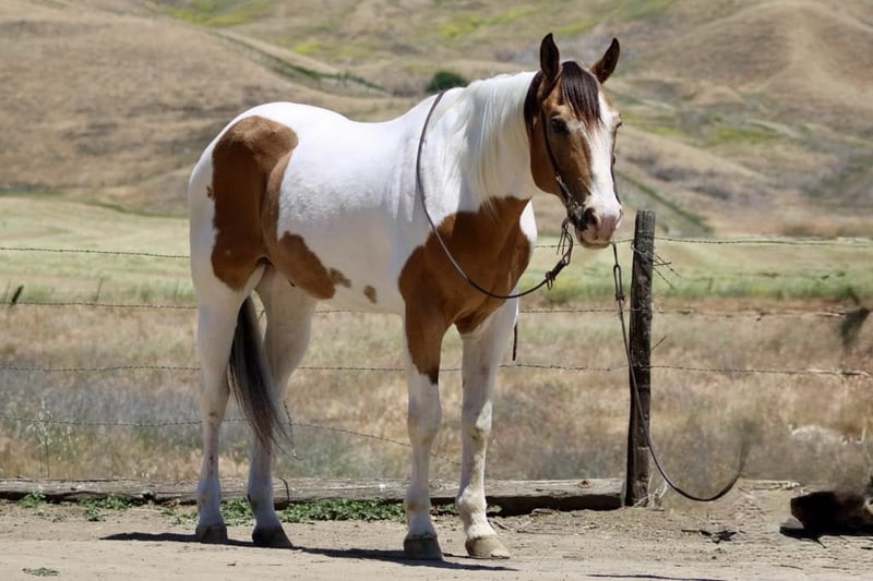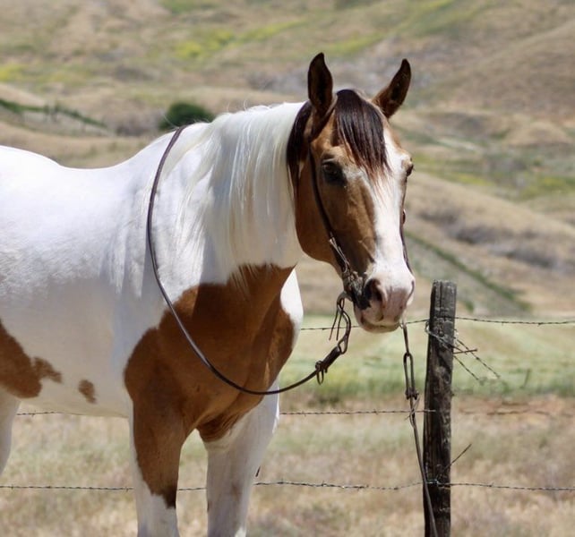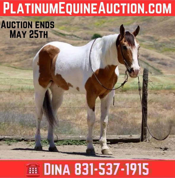 ONLINE AUCTION Place your bids at www.PlatinumEquineAuction.com Starting Bid $3500 Auction ends May 25th, 2025 Need a new saddle? Check out White Rock Saddles on our website or Facebook! Meet Beethoven, the ultimate kid -safe husband’s horse who is a stunning tri-color buckskin and white paint gelding who stands proudly at 15.1 hands tall and is brimming with charm at the age of 13. With a gentle demeanor that can put even the most anxious rider at ease, this remarkable horse embodies what it means to be a kid-husband, grandma safe horse—an ideal partner for anyone looking to dive into equestrian adventures! Imagine embarking on long trail rides where Beethoven’s calm attitude shines brightly; he navigates through tight spots with grace while crossing rivers or tackling obstacles like it’s second nature. This easy-going gelding is not just about leisure; he’s got ranch work under his belt, confidently gathering and branding cattle without a second thought. In the arena he is low headed has slow lope,bush button stop and easy back up. But wait—it gets better! Beethoven excels in obstacle courses too! Picture him calmly maneuvering past flags, tarps, bouncy balls, and pool noodles as if they were mere whispers in the wind. Even the loudest vehicles like cars and semis don’t faze him one bit; he remains unruffled as he walks alongside them. On top of all these impressive skills under saddle, his ground manners are nothing short of extraordinary—he ties effortlessly without fussing and clips like an absolute champ. Bath time? No problem! He stands patiently while being groomed from head to hoof like the true gentleman he is. With every movement executed smoothly as if programmed by some divine force Beethoven proves himself over and over again—a well-tuned partner ready for whatever you throw his way! Plus, he is a consistent horse who will be the same reliable partner every day. If you are interested in meeting this encyclopedia of horses, please contact Dina at Longhorn Ranch 831-537-1915 located in Paicines ca. Beethoven has so much to offer and is ready to teach his next owner all about owning a safe and reliable equine partner. Don’t miss out on the opportunity to make this incredible gelding a part of your family today! ONLINE AUCTION Place your bids at www.PlatinumEquineAuction.com Starting Bid $3500 Auction ends May 25th, 2025 Need a new saddle? Check out White Rock Saddles on our website or Facebook!
