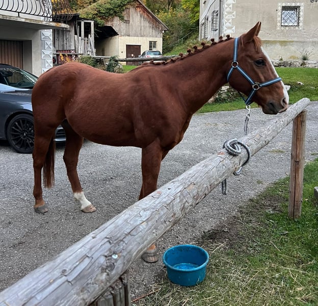 Looking for a calm and peaceful home for my beloved gelding. Unfortunately, he feels overwhelmed by my younger horse, as he is quite low in the pecking order and tends to be very tolerant. He is familiar with both box and pasture turnout, and he adapts well to both environments, although I think a stall at night would suit him very well. I could also see him as a school horse, as he is a very laid-back and gentle ride. He has previously worn shoes but has been barefoot for some time now; he still has some sensitivity, but when shod, this is not an issue. Solo rides are still a work in progress, but we have already made good progress with this. Please feel free to contact me if you have any questions.