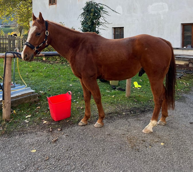 Suche für meinen lieben Wallach ein ruhiges Zuhause. Leider ist er mit meinen jüngeren Pferd überfordert, da er sehr Rang niedrig ist und sich sehr viel gefallen lässt. Er kennt Box und Offenstall, mit beiden Haltungen kommt er gut zurecht wobei man auf die Staubbelastung achten sollte da er COB hat, er kann aber damit sehr gut leben. Kontrolle durch den TA würde gemacht. Ich könnte ihn mir auch gut als Schulpferd vorstellen, da er ein sehr gemütliches Pferd ist. Er ist kein Gewichtsträger. Er hat früher Eisen getragen ist aber auf Barhuf umgestellt worden, leichte Fühligkeit ist noch vorhanden, wenn er seine Schuhe trägt ist das aber kein Problem. Alleine ausreiten ist für ihn noch ein Thema aber wir haben daran gearbeitet und haben schon gute Fortschritte gemacht Bei weiteren Fragen einfach melden