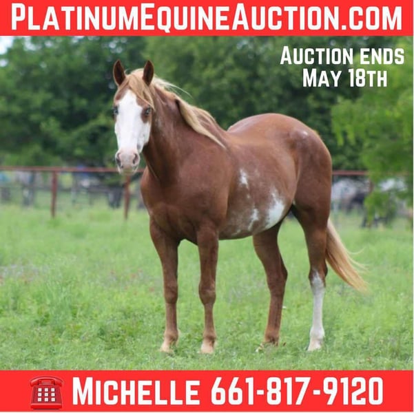 ONLINE AUCTION Place your bids at www.PlatinumEquineAuction.com Starting Bid $3500 Auction ends May 18th, 2025 Need a new saddle? Check out White Rock Saddles on our website or Facebook! Meet Boon, a stunning paint gelding with striking blue eyes that will surely catch your attention! At 14 years old and standing at 15 hands tall, he’s the perfect companion for any rider looking to enjoy the great outdoors. Boon has spent most of his life exploring trails and has seen countless miles, proving to be a reliable partner who can handle it all—logs, water, bridges, and even tarps. While he may not be the ultimate ranch horse, Boon is an excellent choice for checking on your herd, waters, and fences. He’s comfortable walking, trotting, and loping in circles, whether in the arena or out in the open pasture. Best of all, he’s incredibly user-friendly—perfect for riders of all skill levels, so you don’t need to be a cowboy to enjoy his company! Boon has even ventured into town, bravely navigating highways with cars and semi-trucks zooming by. He’s also experienced the hustle and bustle of the Fort Worth stockyards, where he encountered carriage horses, crowds, and traffic—all without a hitch. Boon truly embodies the “jump on and go” spirit! Rest assured, Boon is up to date on everything—his teeth have just been floated, he’s been wormed, and he sports a fresh set of shoes. He’s easy to catch, groom, saddle, and bridle, and loading and unloading from the trailer is a breeze. Plus, he comes with a brand new, current Coggins. If you’re looking for a dependable and easy-going horse to accompany you on your adventures, Boon is your guy! Come meet him and see for yourself what a wonderful companion he can be! If you can’t make it in person please don’t hesitate to call and set up a FaceTime meeting with Boon Feel free to call or text with any questions you may have we are happy to answer them all. We have a list of reliable professional haulers to get him safely to your door step. Shipping is available world wide including Hawaii, Canada and anywhere in between. Located in Stephenville, TX. Contact M $ Performance Horses Michelle 661-817-9120 with any questions. ONLINE AUCTION Place your bids at www.PlatinumEquineAuction.com Starting Bid $3500 Auction ends May 18th, 2025 Need a new saddle? Check out White Rock Saddles on our website or Facebook!