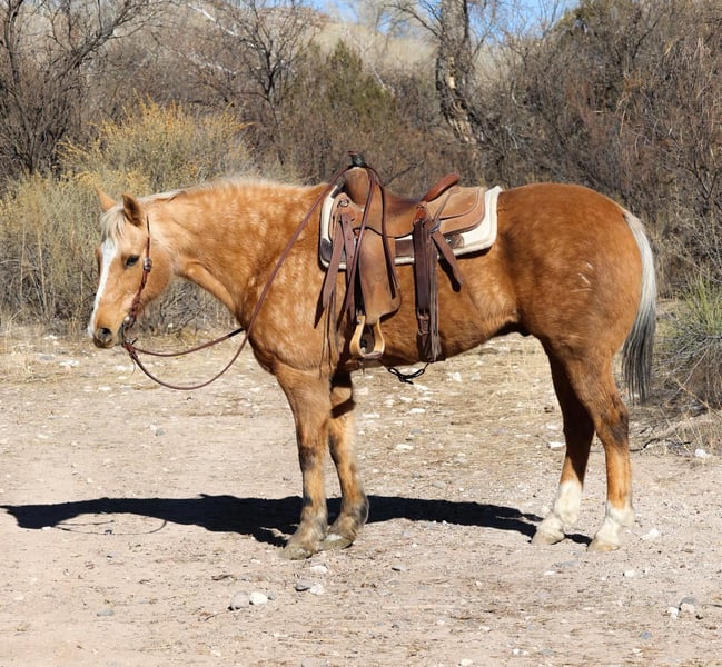 ONLINE AUCTION Place your bids at www.PlatinumEquineAuction.com Starting Bid $3500 Auction ends February 9th, 2025 Need a new saddle? Check out White Rock Saddles on our website or Facebook! Cruz is a 14 year old grade gelding standing 15hh. This big pretty gelding is everyone’s dream horse! Whether you’re looking to go do a long days work, play around in the arena, or hit the trails, Cruz is your man!! We’ve used Cruz all over Arizona working on ranches and he’s no stranger to a long days work. Drag calves, make big circles, doctor yearlings, plow through rough country, you name it and Cruz will do it willing and safe as can be! If a long days work isn’t for you and you just want to mosey on down the trail, Cruz will be just as pleased and take great care of you! This gelding is not only an absolute blast to ride outside, but just as fun and well mannered in the arena! Walk, trot and lope both ways with ease, fancy neck rein and turn around, and a great stop! If you’re looking for a true all around horse then Cruz is your man! Cruz is good to catch, groom, saddle, bridle, bathe, shoe, and load. Will come with a clean coggins and health! Transport can easily be arranged anywhere in the US!! Contact D/C Equine Services Dallas 804-822-2233 Natasha 928-460-2625 Located in Camp Verde, AZ. ONLINE AUCTION Place your bids at www.PlatinumEquineAuction.com Starting Bid $3500 Auction ends February 9th, 2025 Need a new saddle? Check out White Rock Saddles on our website or Facebook!