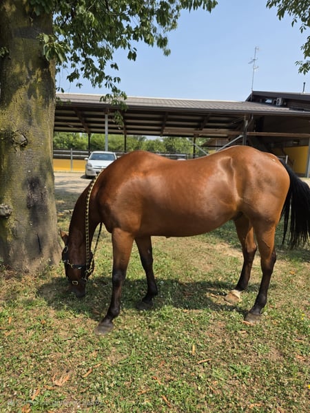 Vendo ( a malincuore) cavallo americano quarter horse con documenti APA. Cavallo molto dolce e sensibile. Adatto a tutti Montato spesso in bosal e a pelo, anche con filetto. Adatto a lavoro con vitelli, trekking e lavoro in piano in campo. Ha tutte le manovre, andature regolari. Senza vizi. Per informazioni contattatemi e per altre foto e video