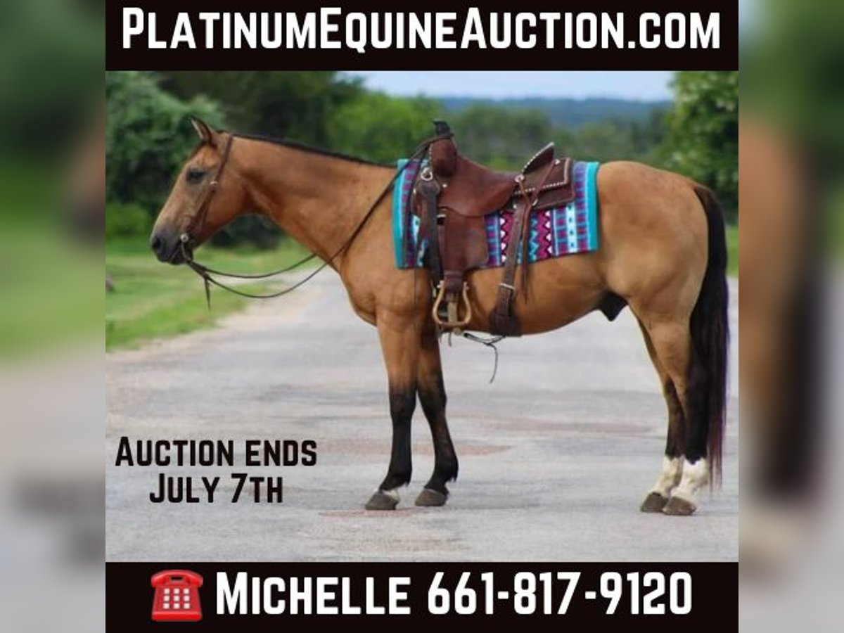 ONLINE AUCTION Place your bids at www.PlatinumEquineAuction.com Starting Bid $3500 Auction ends July 7th, 2024 Need a new saddle? Check out White Rock Saddles on our website or Facebook! Let me introduce to you the one and only “Billy Bob” he is a 14 year old buckskin gelding standing 14.1 hds tall . He is absolutely 100% user friendly and you don’t have to be an expert horseman to ride him . He is SAFE for all levels of riders from the first time beginner to the most experienced horseman out there , everyone enjoys taking him for a spin . We have gave countless lessons on him from the littles all the way up to the adults . Billy Bob has a sweet , loving old soul to him and is happy to do whatever you ask of him. He loves to go out and explore the trails . He is confident and brave all while taking care of his rider . He has seen many miles of trails from the busy city streets to the quiet mountains. He will walk out down the trail all day long on a loose rein and is happy to do it . Billy Bob will cross bridges , water , logs , tarps and brush with no issues at all . He has seen many wildlife out on the trails and doesn’t bat an eye . He will walk , trot and lope beautiful circles in the arena as well . Always picks up the correct leads , he has a smooth little short lope to him . He is always laid back , easy going , definitely a more whoa than go type of dude but not one you have to peddle along , leave him off for 6 months and he will be the same horse every time . He is absolutely a in your pocket type of horse, he loves attention and will stand there all day long for you to groom and love on . He has excellent ground manners , easy to catch in the pasture , stands for the farrier , loads and unloads off the trailer with no issues. If you need help with transport don’t hesitate to ask we have a list of reputable haulers that can get him safely to your doorstep world wide. Located in Stephenville, TX. Contact M$ Performance Horses Michelle 661-817-9120. ONLINE AUCTION Place your bids at www.PlatinumEquineAuction.com Starting Bid $3500 Auction ends July 7th, 2024 Need a new saddle? Check out White Rock Saddles on our website or Facebook!