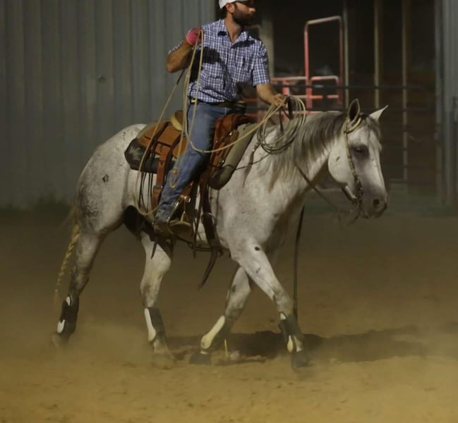 ONLINE AUCTION Place your bids at www.PlatinumEquineAuction.com Starting Bid $3500 Auction ends July 27th 2025 Need a new saddle? Check out White Rock Saddles on our website or Facebook Meet Cool, a 2009 AQHA registered gray gelding with the kind of breeding, handle, and heart that sets him apart. Standing 14.2 hands, this gelding is handy, athletic, and broke in all the right ways. Whether you’re backing into the box, working on the ranch, or just want a horse that’s as dependable as he is good-looking, Cool is the kind that earns his keep every time you saddle him. “Cool Like That” is the product of proven genetics. He’s sired by Catalano, a son of the legendary High Brow Cat, the all-time leading sire of cutting horses with over $90 million in offspring earnings. Catalano carries on that tradition with his own offspring, who are known for cow sense, trainability, and performance grit. Cool’s bottom side is equally strong. His dam is by Smart Chic Olena, the NRHA Hall of Famer and AQHA World Champion whose offspring have won over $14 million in reining, cow horse, and versatility competition. The cross of High Brow Cat and Smart Chic Olena gives Cool a rare blend of power, precision, and calm-minded dependability. Cool is a finished heel horse that’s been hauled and used. He’s calm in the box, rates cattle naturally, and has a clean stop every time. He’s also spent plenty of time on the ranch — roping outside, sorting pairs, dragging calves, and crossing rough country without hesitation. He’s the kind you can count on for a long day’s work or a relaxed evening ride. In the arena, he rides soft and correct. He lopes beautiful circles, responds to leg cues, stops hard, and has a stylish, correct turnaround. He’s equally comfortable collected up or on a loose rein, making him a joy to ride for just about anyone. On top of all that, Cool rides bridleless and bareback — a testament to his smooth gaits, trustworthiness, and training level. He’s also been hauled to wagon races, where he handled the chaos like a pro — crowds, commotion, fast horses, and loud noise don’t rattle him. He ties to the trailer quietly, stands patiently all day, and rides the same whether he’s at home or somewhere new. Cool is easy to be around, great to shoe, and a gentleman on the ground. He gets along well with other horses and settles quickly in new places. Whether you’re a ranch hand, a roper, or just looking for that special gelding you can enjoy for years to come — Cool is the kind that gets noticed for all the right reasons. For more info contact Lacey Wilf 501-940-8704 Located in Quitman, AR. ONLINE AUCTION Place your bids at www.PlatinumEquineAuction.com Starting Bid $3500 Auction ends July 27th 2025 Need a new saddle? Check out White Rock Saddles on our website or Facebook