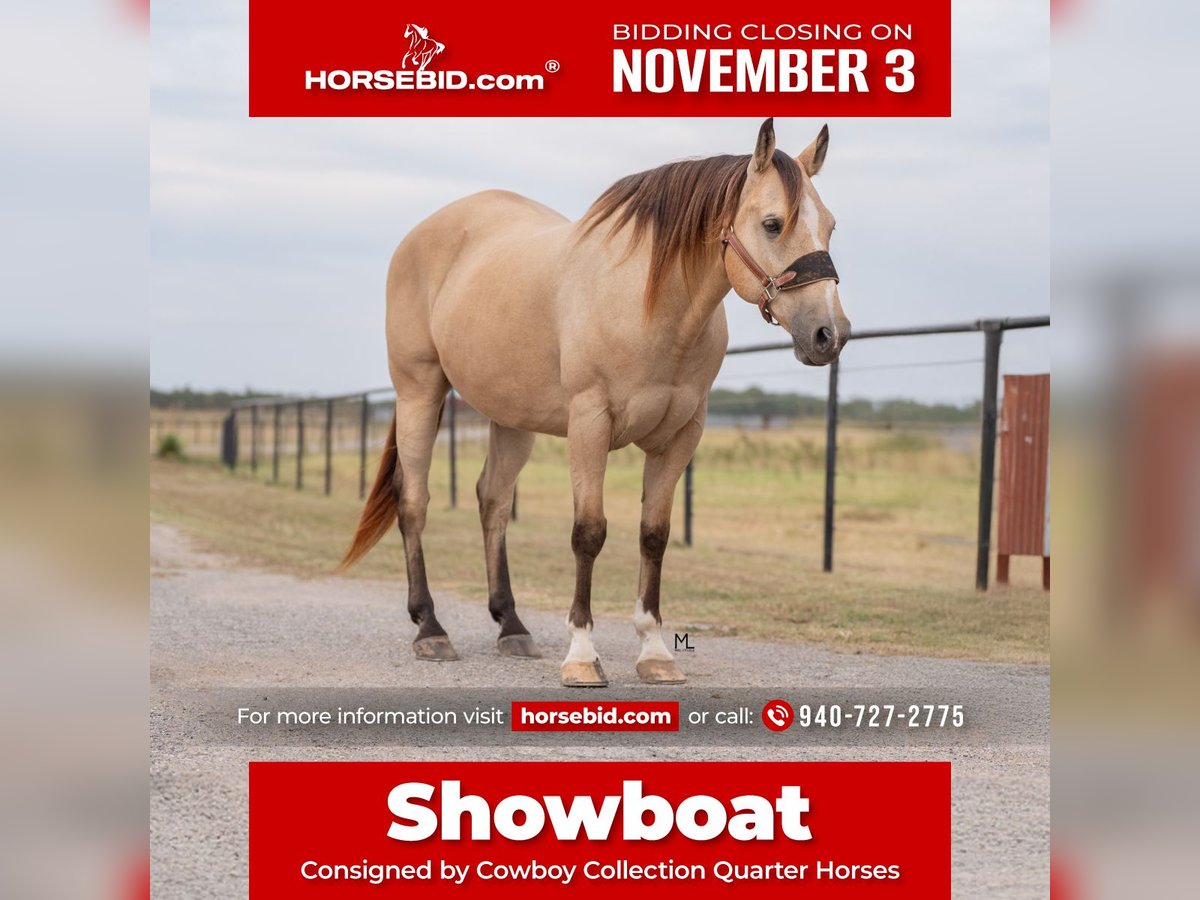 ⚜️𝐓𝐇𝐄 𝐅𝐀𝐋𝐋 𝐇𝐄𝐑𝐈𝐓𝐀𝐆𝐄 𝐂𝐋𝐀𝐒𝐒𝐈𝐂⚜️ Happening now thru MONDAY | NOVEMBER 3rd - Available EXCLUSIVELY on HorseBid's website! For more details and to register visit: www.Horsebid.com CONSIGNOR CONTACT: Cowboy Collection Quarter Horses 940-727-2775 LOCATION: Gainesville TX BREED: AQHA REGISTERED: Yes REGISTERED NAME: Who Dat Leo Twister COLOR: Buckskin HEIGHT: 15 AGE: 15 GENDER: Gelding "SHOWBOAT' is the ticket to a GREAT ride! Smooth traveling and responsive to rider cues. He has been pasture ridden as well as in the arena. He is calm and pretty. Good on trails. No soundness issues and good with the farrier. He loads, hauls, and is easy to catch. Watch the ENTIRE VIDEO to see him perform. Broke to the mounting block. He is good with other horses and is also fine in the stall. This pretty gelding will make you shine!! PPE welcome at buyers expense. Call Todd at (940) 727=2775 for more information.