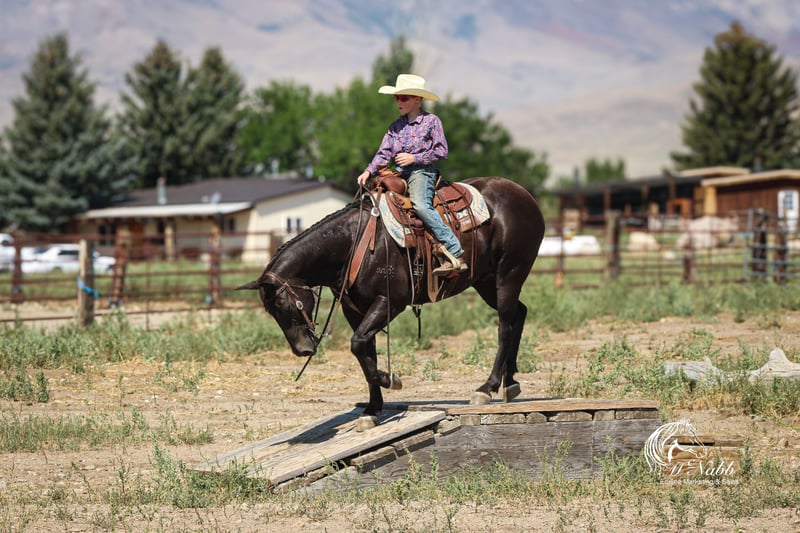 𝕄ℂℕ𝔸𝔹𝔹 𝕃𝕀𝕍𝔼𝕊𝕋𝕆ℂ𝕂's 🍂𝟑𝟎𝟕 𝐅𝐀𝐋𝐋 𝑺𝒑𝒆𝒄𝒊𝒂𝒍🍂 Happening now thru MONDAY | SEPTEMBER 15th - Available EXCLUSIVELY on HorseBid's website! For more details and to register visit: www.Horsebid.com CONSIGNOR CONTACT: McNabb Livesetock LLC 307-250-0900 LOCATION: Cody, Wy BREED: AQHA REGISTERED: Yes REGISTERED NAME: Oil Pull Ike COLOR: Black HEIGHT: 15 AGE: 15 GENDER: Gelding The kids love his name, Hershey because of his chocolaty brown color. They believe he looks like the color of a candy bar. He is just a sweet as one too. Hershey is that steady Eddie horse that everyone needs weather you are looking for your first horse, your last horse, or kids horse Hershey is your guy. Hershey is that super sweet ranch gelding that anyone can get along with. He’s gentle, kind, easy to catch and enjoys being around you. We purchased him from a neighbor who was forced to retire from riding only due to her health. We purchased her last 3 horses and she didn’t want to sell, he was truly loved and he took such excellent care of her. This is the kind of horse that everyone is looking for, the one that no one wants to sell. She had owned him for 8yrs. We have had him in our program for the past 6 months and he has been exactly everything she loved. He’s solid and seasoned down the trail, no vices, no bad habits. Give him time off and just go have a fun ride. No nonsense. He has been ridden alone for miles up in the mountains, he’s just solid and dependable. He’s also happy to ride in a group, not buddy sour, gets along with all the other horses. Hershey is truly a horse of a lifetime. We put the most beginner, timid riders on him and they have so much fun. Hershey is a confidence booster. He’s the whole package, if you need him to do a ranch job he’s been there and done that, if you want him to go for a trail ride, he’s hassle free and if you need him to babysit the grand kids he’s the one for the job. Hershey has always had excellent care and handling. He has had a basic PPE, up to date on worming, dental and farrier. We welcome you to do your own PPE and to come to the ranch a to meet Hershey. We also are glad to help arrange transportation. We will hold the horses at no charge for a reasonable amount of time to get hauling arranged. For more information call 307-250-0900. We have lot more great stories we are glad to tell you Hershey.