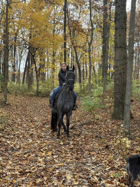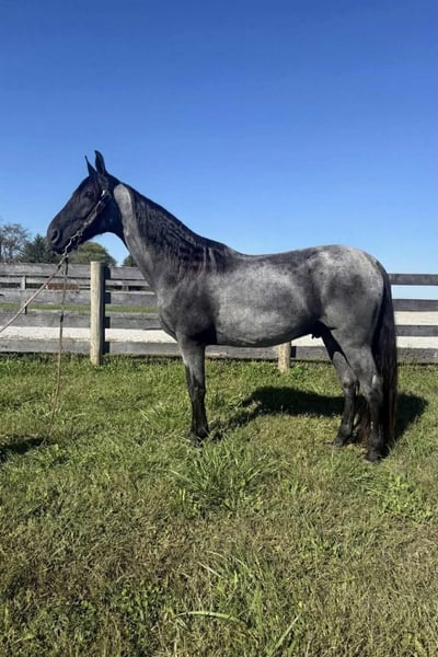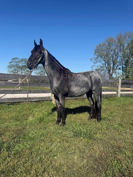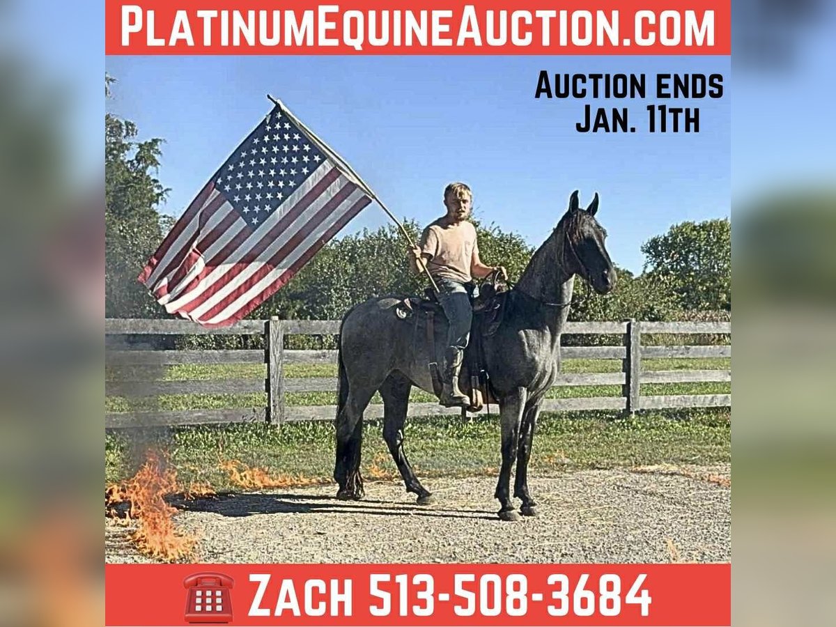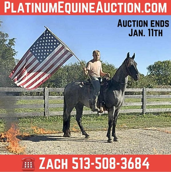 ONLINE AUCTION Place your bids at www.PlatinumEquineAuction.com Starting Bid $3500 Auction ends January 11th, 2025 Need a new saddle? Check out White Rock Saddles on our website or Facebook River is a extra handsome classic blue roan gelding, reg twh, 15 year old, he is standing close to 15.2, this is very experienced trail gelding that truly has logged more trail miles than most 2 or 3 horses combined, he has been to countless big trail rides in several states as well trips out alone as well. River is nice correct gelding that knows his job and is fun to ride. He has a smooth gait and is uncomplicated to ride. River is a forward moving horse that likes to gait when ready, he is an easy keeper and maintenance free. River gets along with other horses and is truly a pleasure to have around, he does great turned out or stalled. River not only stands for mounting but will park out on command making him easier to mount. This horse has been there done that and seen the sights. If you want drama free and worry free here he is wrapped in that beautiful blue roan coat! Located in Grassy Creek, KY. For more info contact Zach with Brandenburg Stables 513-508-3684. ONLINE AUCTION Place your bids at www.PlatinumEquineAuction.com Starting Bid $3500 Auction ends January 11th, 2025 Need a new saddle? Check out White Rock Saddles on our website or Facebook