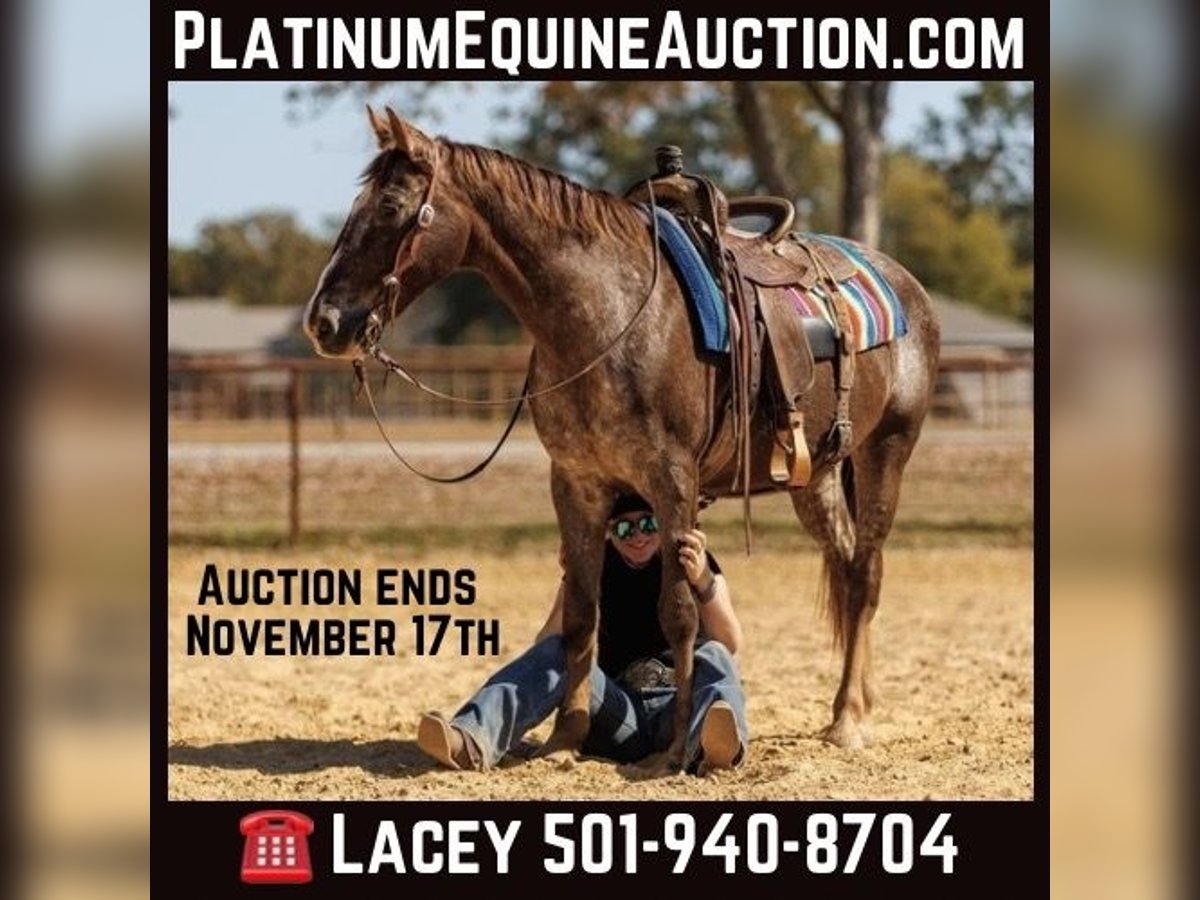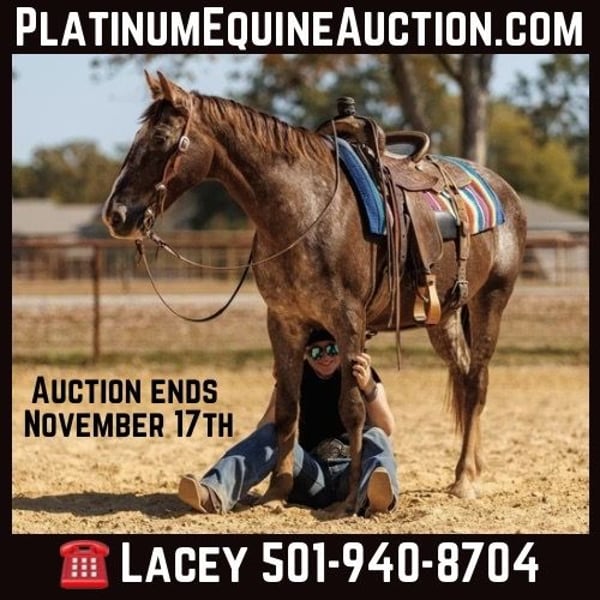 ONLINE AUCTION Place your bids at www.PlatinumEquineAuction.com Starting Bid $3500 Auction ends November 17th, 2024 Need a new saddle? Check out White Rock Saddles on our website or Facebook! Rascal is the real deal! Not only is this appaloosa gelding colored and cute he is the prime age and absolute perfect size at 15 year old and 14.1hh! Rascal does it all and does it all exceptionally well. He rides western, english, bareback and jumps as well. He is incredibly smooth and comfortable to ride, with a nice jog and rocking chair lope. This little gelding has a docile demeanor and is a complete gentleman to be around. Rascal stands tied quietly, bathes, catches, saddles, etc. without any fuss or silliness. He is a seasoned veteran and trustworthy partner on the trails. Rascal has seen many miles of rough terrain on trail rides all over Arkansas. He will navigate through thick brush, logs, water and any other obstacles with complete confidence and zero hesitation. Rascal has seen the sights and sounds of town. Heavy traffic, dogs, crowds, etc. are no issue for this guy. He will remain level headed and quiet in all types of chaos. Rascal is our “go to guy” and ready for any adventure. He has been used for lessons and been ridden by all levels of riders. Rascal has a small indention in his head that is purely cosmetic and does not affect him. He will remain patient, kind and forgiving of his rider at all times. Rascal stays broke day in and day out, is fun to own and one everyone in the family can enjoy. Located in Quitman, AR. Contact Lacey Wilf 501-940-8704 with any questions. ONLINE AUCTION Place your bids at www.PlatinumEquineAuction.com Starting Bid $3500 Auction ends November 17th, 2024 Need a new saddle? Check out White Rock Saddles on our website or Facebook!