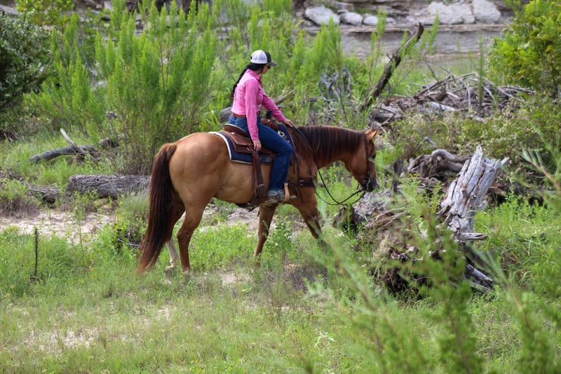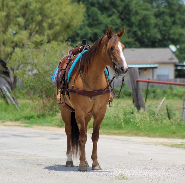 ONLINE AUCTION Place your bids at www.PlatinumEquineAuction.com Starting Bid $3500 Auction ends August 4th, 2024 Need a new saddle? Check out White Rock Saddles on our website or Facebook! If you’re looking for one that is seasoned , tried and true then this guy is the one for you! “Dunny” is a 14 year old gorgeous , stout made red dun gelding standing 15.1 hds tall and has the looks to boot ! This sweet loving gelding has seen the sights and been hauled around the world . He has dabbled in about a little bit of everything he was shown on a college equestrian team for many years and rode by many different riders on the teams . He has a beautiful slow walk , trot and lope and also low headed with a great stop ! He is very user friendly and forgiving. Dunny is awesome out on the trails and will go anywhere you point him! He has been down the famous bricks of Exchange Ave at the Fort Worth Stockyards with crowds of people , traffic and all kinds of commotion and he did it bridle less! He enjoys going down the trails will cross water , rocks , bridges , tarps with no issues at all . Put him in the front , back or middle and he is fine or if you just want to go out on nice rides by yourself Dunny doesn’t mind that either . We recently rode him in our Fourth of July parade and he was a rockstar as always ! Dunny is one the whole family can enjoy! He isn’t one that needs rode consistently leave him turned out for months catch him up and go for a ride . He is currently turned out in a pasture with three other geldings he gets along with everyone . Easy to catch , groom , tack up . He loads and unloads with no issues at all . His teeth were just floated , and just got a new set of shoes put on . He’s ready to go to his new forever home . Watch his video and you will fall In love. Contact us to come try him , or we can set up a FaceTime call. If you need help with transport don’t hesitate to ask we have a list of reputable haulers that can get him safely to your doorstep world wide .Contact M $ Performance Horses Michelle 661-817-9120 Located in Stephenville, TX. ONLINE AUCTION Place your bids at www.PlatinumEquineAuction.com Starting Bid $3500 Auction ends August 4th, 2024 Need a new saddle? Check out White Rock Saddles on our website or Facebook!