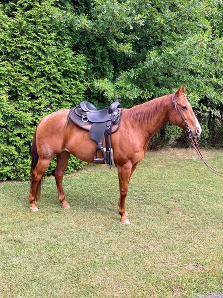 Sweet Gentle Trail Horse 16 Yr Old Red Roan AQHA Gelding!