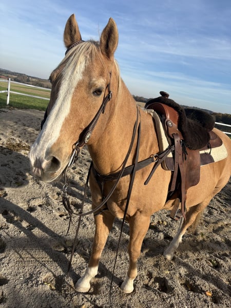 Bonjour, Je souhaite trouver un nouveau propriétaire pour Mister Pepper Sam, alias Sammy, car malheureusement, je n'ai plus assez de temps pour deux chevaux, et sa participation aux soins et aux balades est également insuffisante. Il n'est pas encore vieux, mais il aime déjà profiter de sa tranquillité. Il adore partir en promenade, se balader, faire quelques tours sur le manège et simplement être un cheval. Il peut rester volontiers au box, mais il est important pour moi qu'il ait beaucoup d'espace pour se dégourdir chaque jour, et qu'il soit en box la nuit. En raison d'une ancienne épisodes de narcolepsie, il ne peut pas rester en paddock libre. Pour plus d'informations, n'hésitez pas à m'envoyer un message. Cordialement, (Le prix inclut tout son équipement : selle, bridon, licol, matériel de nettoyage)