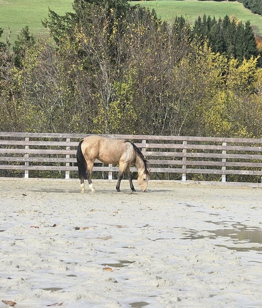 "Wow Voodoo" ist ein absolutes Ausnahmepferd und der perfekte Partner für denjenigen, der ein talentiertes Nachwuchspferd sucht. Mit seinem kräftigen, großrahmigen Körperbau und seinem buckskin farbenden Fell ist er ein absoluter Hingucker... Charakterlich zeigt er sich sehr aufgeschlossenen und menschenbezogenen. Er ist sowohl Gruppen- als auch Boxenhaltung gewöhnt und verhält sich in unserer Herde problemlos fen anderen Pferden gegenüber. Er stammt aus unserer eigenen Zucht und hat mit seiner tollen Abstammung alle Wege offen, Später mal ein tolles Showpferd, oder aber auch ein zuverlässiger Freizeitpartner zu werden... Sein Vater ist "Shiners Voodoo" der unter anderem mehrere Level 4 Open Derby und Futurity Champion Titel gewann und eine Gewinnsumme von über $80,000.00 + erzielte. Auch seine Mutter "Miss G*n N Hollywood" trägt sehr erfolgreiche Namen auf ihrem Papier, unter anderem der legendäre G*nner, Hollywood Dun It und Frozen Sailor. "Voody", wie wir ihn nennen, ist bei der Nrha Germany, Euro und Irha eingezahlt. Er ist ein super unkompliziertes Pferd und sehr gut zu händeln. Bei weiteren Fragen meldet euch gerne bei uns:)