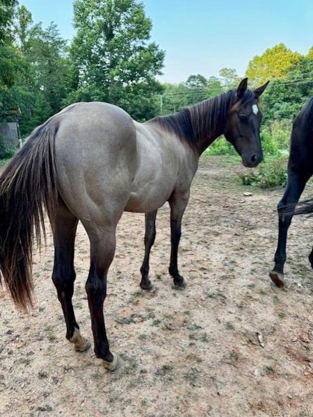 2024 AQHA Grulla Gelding Rawhides Blackburn "Gunner" is a super laid back yearling that already has been clipped and been hauled a few times. He has had his feet done. He will make just about anything you want. Located in North Carolina.