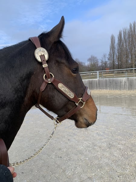 ✨Smart Podoco Gun✨ Schweren Herzens suche ich für meinen geliebten Wallach, aus persönlichen Gründen die ich Privat erzählen kann, ein neues zuhause.🥺 (dringend) 🐴geb. 03.01.2023 🐴American Quarter Horse 🐴Wallach 🐴5 Panel n/n Ich habe ihn mit 10 Monaten von einer sehr netten Züchterin gekauft. Da durfte er schon Traktoren, Kinder, Hunde, Katzen usw. kennenlernen. Beim Tierarzt👩🏻⚕️ ist er stehts immer sehr brav. Zeigt sich immer neugierig und gelassen. Beim Hufschmied⚒️ auch sehr sehr brav. Er mag sehr gerne die Hufschmiedin mal zu ärgern mit knabbern, schlecken und bussi geben. Ansonsten Hufe geben kein Problem. Beim Anhänger🚗 fahren steigt er brav ein und fahrt brav mit. Er braucht jedoch seine zeit zum austeigen da er gerne beobachtet was passiert und mal aufgeregt ist bei neuer Umgebung. 🦄Sein Wesen: -Neugierig -Verspielt -Aufmerksam -Sozial (will mit jedem Tier spielen/freunde sein) -Anhänglich auch mal ungeduldig 🍀Was ich mir für ihn wünsche: -Liebevolles zuhause -Liebe -Geduld -Abwechslungsreiche Arbeit (Spazieren, Bodenarbeit, Equikinetik usw.) -Feste Routine -Vertrauen ❌Was ich mir für ihn besten falls nicht wünsche: -Weiter Verkauf -Schulbetrieb -Stress Er wird von mir als roh Diamant verkauft💎 Da er nur baumlosen sattel, zaumzeug kennt. Ich saß nur max. 6-8 mal für 5-10min oben im schritt und einmal trab. 📍AT🇦🇹 7000 Eisenstadt 🥕🥕🥕🥕🥕 mit gesamten Equipment (Baumsoler sattel, Zaumzeuge, Bosal, Zusatzfutter, Pad, Decke, Halfter uvm.)