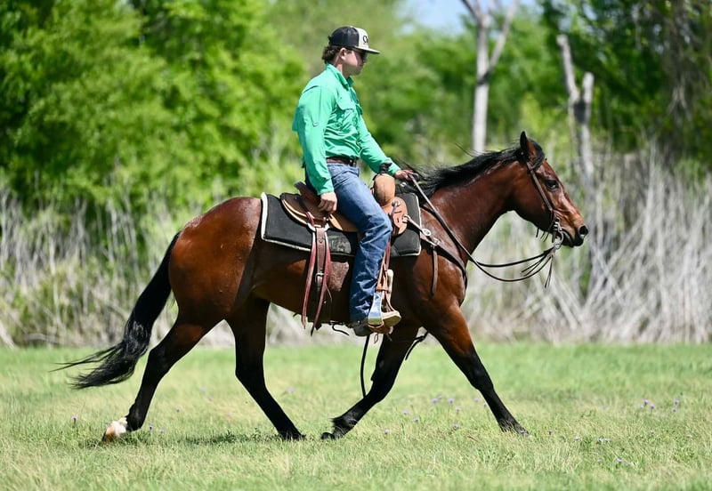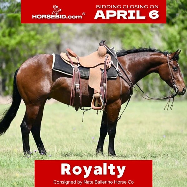 🌟𝑨𝒑𝒓𝒊𝒍 𝐀𝐋𝐋 𝐒𝐓𝐀𝐑 𝐋𝐈𝐍𝐄𝐔𝐏🌟 Happening now thru MONDAY | APRIL 6th - Available EXCLUSIVELY on HorseBid's website! For more details and to register visit: www.Horsebid.com CONSIGNOR CONTACT: Nate Ballerino Horse Co 254-716-9588 LOCATION: Waco, TX BREED: Qh REGISTERED: Yes REGISTERED NAME: Royal Mile COLOR: Bay HEIGHT: 14.2 AGE: 3 GENDER: Gelding This gelding sired by One Time Royalty was started in a cutting program and has since gone on to our program getting broke in the arena. We’ve used him to sort pairs and we’ve doctored a handful of calves on him. He takes both leads, is a big stopper, and turns both ways with ease. He’s handy, useful, and easy to be around on the ground. If you’re looking for a good-minded, broke gelding with a solid start, he’s one to take a look at. Contact Nate Ballerino for further information 254-716-9588. Nation wide shipping available.