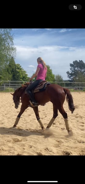 ⸻ 🌟 Traumhafter 3-jähriger Quarter Horse Wallach von NOT RUF AT ALL 🌟 Dieser wunderschöne 3-jährige Quarter Horse Wallach überzeugt mit Traum-Charakter, tollem Exterieur und sehr viel Talent in den Manövern. Er wurde von einem Profitrainer behutsam angeritten und ist grundausgebildet in allen Reining-Manövern. Schon jetzt zeigt er beeindruckende Rittigkeit, Lernfreude und ein ruhiges, ausgeglichenes Wesen. Direkt vom Züchter NRHA Germany und EURO eingezahlt Ein echtes Herzenspferd – leicht zu reiten, stets bemüht und mit großem Potenzial für Sport oder Freizeit. • Ausbildung: Grundausbildung durch Profitrainer • Eignung: Reining, Allround, Freizeit