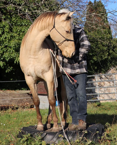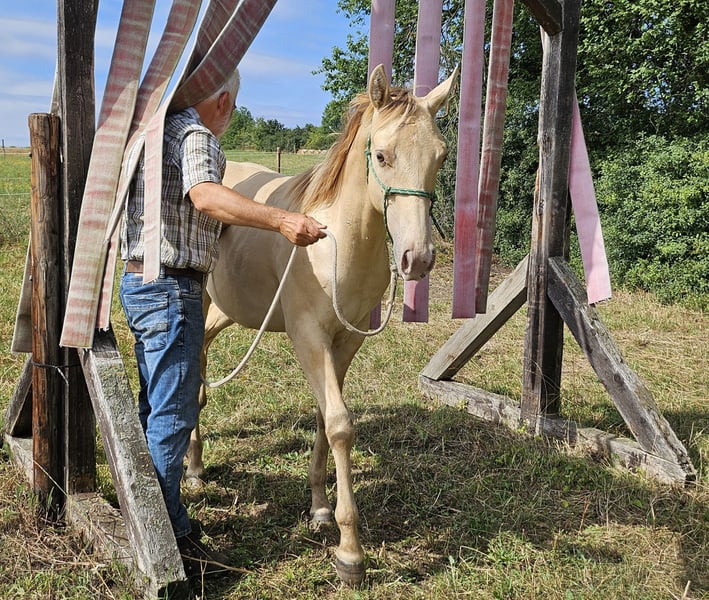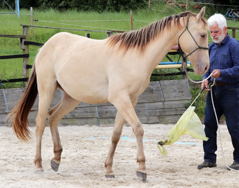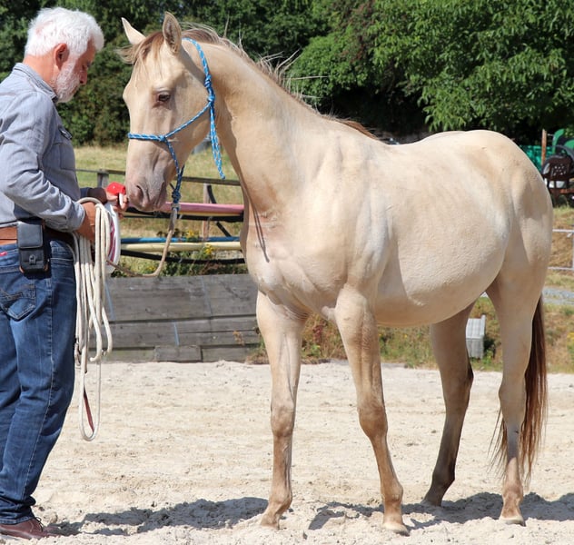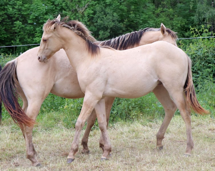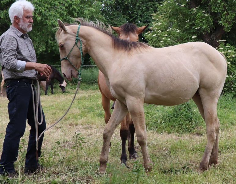 neugieriges Jungpferd in Amber Champagne Dun