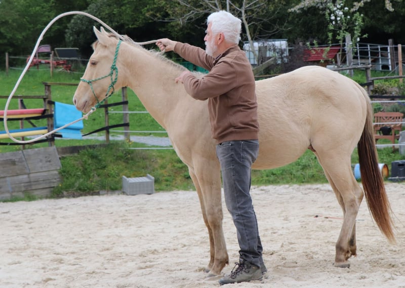 Ivo to wyrazisty młody ogier, który jest ciekawy od pierwszego dnia. Stanie się bardzo wiarygodnym partnerem na całe życie dla ambitnego zawodnika rekreacyjnego lub turniejowego. Jest on starannie przygotowany przez nas do jego przyszłego życia metodami Naturalnego Jeździectwa. Cieszy się życiem w otwartych stajniach na dużym pastwisku w mieszanym stadzie. Na naszej stronie http://pferdezucht-maxen.de/Ivo-Dunit-Maxen/ pod przyciskiem "Protokół treningowy" znajdziesz aktualny status szkolenia.