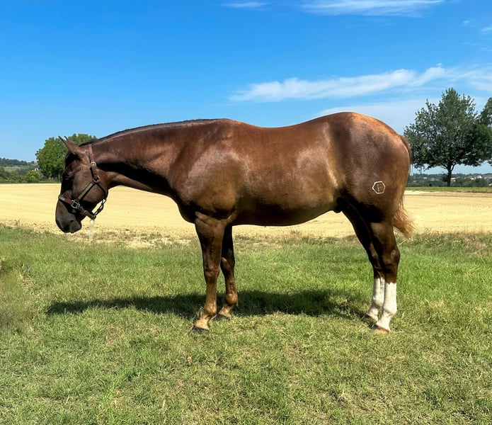 JONNY CASH - 3 years old Gelding Our 3-year-old gelding Jonny Cash was born and trained here at our facility. He has a solid basic training and just needs a few more months to be ready for showing. He is an absolute reliable horse and also perfect for long, relaxed trail rides. Easygoing and relaxed in handling. Sired by Muchochex To Cash (Nu Chex To Cash - NRHA Million Dollar Sire, LTE's over $61,000.00, All-Time AQHA Reining Point Earner) X Spring Arlena by Mister Dual Spring (Mister Dual Pep has a LTE earning of $52,040 and in NCHA a total of $43,784.91. His offspring have earned over 3 million). - Paid in all programs - Clean vet check For more information, give us a call 📞