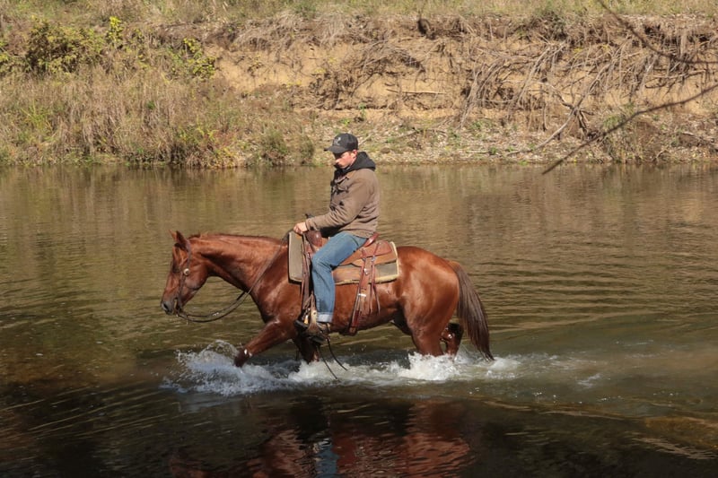 ⚜️𝐓𝐇𝐄 𝓗𝓮𝓻𝓲𝓽𝓪𝓰𝓮 𝐖𝐢𝐧𝐭𝐞𝐫 𝓒𝓵𝓪𝓼𝓼𝓲𝓬⚜️ Happening now thru MONDAY | DECEMBER 29th - Available EXCLUSIVELY on HorseBid's website! For more details and to register visit: www.Horsebid.com CONSIGNOR CONTACT: Eli Sales 417-848-6360 LOCATION: Mt. Vernon, MO BREED: Quarter Horse REGISTERED: No COLOR: Sorrel HEIGHT: 14.2 AGE: 3 GENDER: Gelding Champ is 3 year old sorrel quarter horse gelding with a sweet disposition and a calm, willing attitude. With no buck, kick, rear or bite on top of his in your pocket personality he’s the kind of young horse that’s a pleasure to be around—gentle, quiet-minded, and easy to handle both on the ground and under saddle. Champ has been used extensively outside to gather cattle, drag calves in the branding pen and to take leisurely trail rides as well as countless days in the stockyards opening and closing gates, sorting cattle and pushing them down the alley. No matter what you find in your path whether it’s rough rocky terrain, mud, brush or even the need to swim across the river, Champ will cross whatever you point him at without hesitation. Champ rides amazing with no buck, kick, rear or bite, moves out smoothly, and takes everything in stride. Champ has good ground manners, stands patiently for grooming, saddling and the farrier. Champ is very respectful and easy to catch whether he’s in a stall or turned out in the pasture he is guaranteed to be in your pocket asking for a treat. He has a solid foundation and the mind to continue learning without fuss. With his attractive sorrel color, sturdy build, and laid-back personality, Champ will make a great partner for a youth, amateur or experienced horseman looking to take him an any direction they choose. Whether you’re looking for a future ranch, trail, rope or all-around horse, Champ has the temperament and potential to excel. If you’re searching for a gentle young gelding that is 100% sound with a great mind and a bright future, Champ is the gentleman you’re looking for.