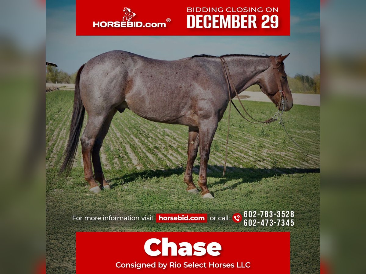 ⚜️𝐓𝐇𝐄 𝓗𝓮𝓻𝓲𝓽𝓪𝓰𝓮 𝐖𝐢𝐧𝐭𝐞𝐫 𝓒𝓵𝓪𝓼𝓼𝓲𝓬⚜️ Happening now thru MONDAY | DECEMBER 29th - Available EXCLUSIVELY on HorseBid's website! For more details and to register visit: www.Horsebid.com CONSIGNOR CONTACT: Rio Select Horses LLC 602-783-3528 or 602-473-7345 LOCATION: Tonopah AZ BREED: AQHA REGISTERED: Yes REGISTERED NAME: BROWNYS ALLSTAR COLOR: Red Roan HEIGHT: 14.3 AGE: 4 GENDER: Gelding 2021 “ BROWNYS ALLSTAR” AQHA Gelding If you’re looking for the "real deal," here he is. Chase is a finished AQHA gelding with a professional reining foundation. He’s spent his life earning his keep, whether it’s under the bright lights of an arena or out doctoring cattle. Chase is broke to death and operates off a whisper. He is a true one-hand horse with "fancy" buttons that are light and responsive. • The Spin: He’ll sit over his hocks and spin a hole in the dirt both ways. • The Stop: He’s got a massive, deep-seated slide stop—he’ll bury his backend and hunt the ground every time you ask. • The Mind: He has a hair-trigger response if you ask for speed, but he’ll drop his head and walk on a draped rein the second you quit him. This isn't just a "pretty" horse; he’s a working partner. Chase has been used for: • Sorting & Cutting: He’s got a natural eye for a cow and holds his ground. • Ranch Chores: He’s been used to doctor and rope out in the open. He knows how to take a joke and stay calm when things get western. • Versatility: He has the miles and the "bottom" to work an all-day shift without quitting. One of the best things about this gelding is his mind. Chase can be taken any direction and is the perfect prospect for whatever you would like him to do. Whether you want to transition him into a high-level breakaway horse, a ranch versatile competitor, or a mounted shooter, he has the foundation and the athletic ability to excel in any discipline you choose. On the trail, Chase is the ultimate insurance policy. He’s been exposed to everything from heavy machinery and barking dogs to rushing water and chaotic environments. • Solid Citizen: He doesn’t have a spook in him. • Independent: He’ll lead the pack or head out solo without getting "buddy sour" or jigging on the way home. • Professional Manners: Stands tied, hauls like a dream, and is a perfect gentleman for the farrier. • Sound & Sane: 100% sound, healthy, and ready to work. • Current: UTD on all vaccinations, Coggins, and dental work. • Loads, unloads, and travels well Whether you want to go win a Ranch Riding prospect class, sort some pairs, or just have the safest, fanciest mount on the trail, Chase is your man. He’s a horse that tries to please his rider every time you swing a leg over him.