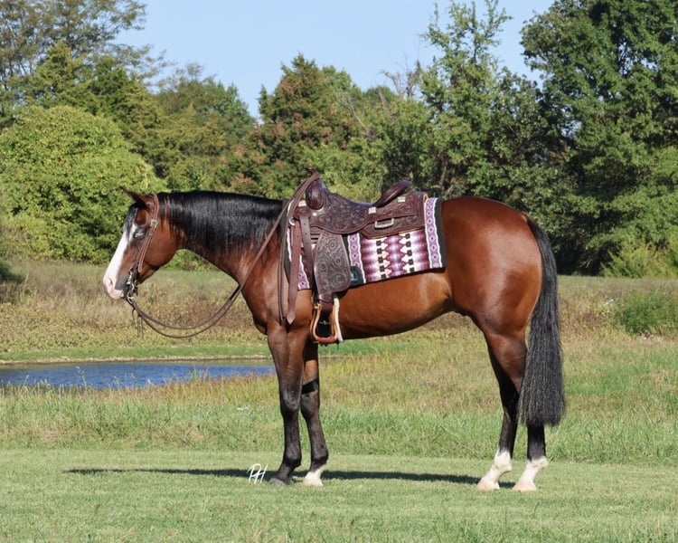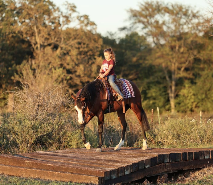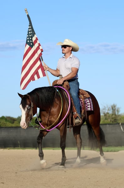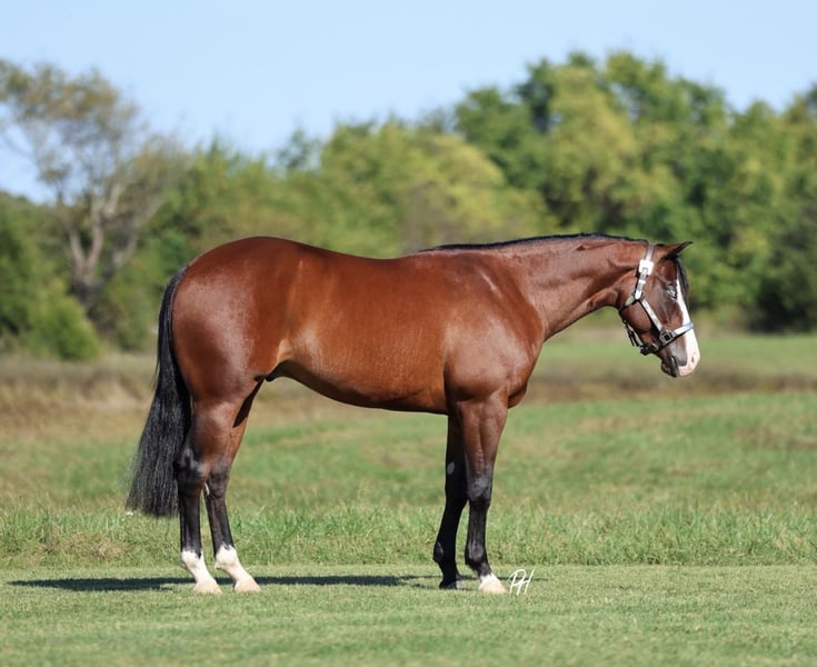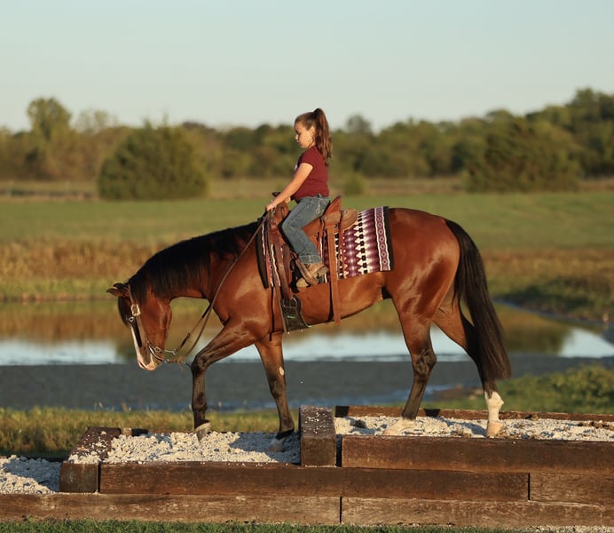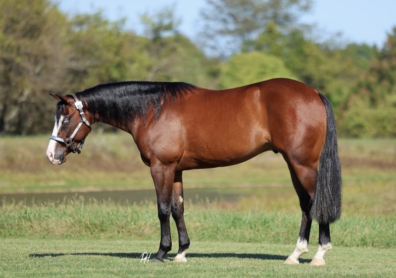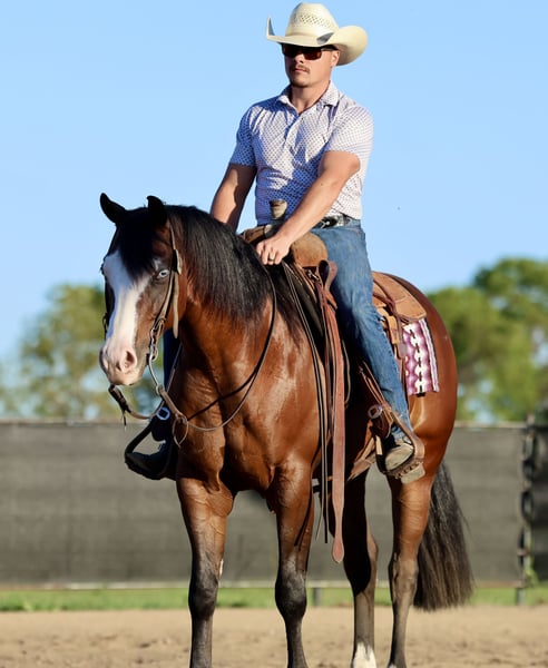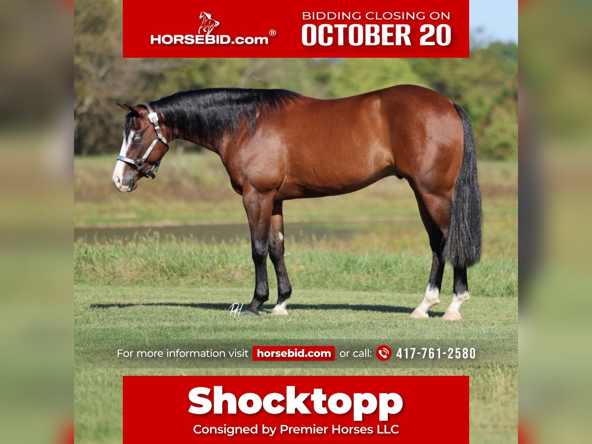 ♦️ 𝐭𝐡𝐞 𝐀𝐌𝐄𝐑𝐈𝐂𝐀𝐍 𝓕𝓪𝓵𝓵 𝓒𝓵𝓪𝓼𝓼𝓲𝓬 ♦️ Happening now thru MONDAY | OCTOBER 20th - Available EXCLUSIVELY on HorseBid's website! For more details and to register visit: www.Horsebid.com CONSIGNOR CONTACT: Premier Horses LLC 417-761-2580 LOCATION: Buffalo, MO BREED: Quarter Horse REGISTERED: Yes REGISTERED NAME: Shocktopp COLOR: Bay HEIGHT: 15 AGE: 3 GENDER: Gelding Shocktopp isn’t your average 3 year old, stick around and you will find out why! He is our daughter’s first pick to go ride, she is only 6 and I think that speaks volumes to the horse he is. Apollo is sired by Spooks Gotta Spark NRHA LTE: $280,799 and offspring earnings: $40,000+ with this being the first year his goals have been eligible to compete. His dam, Corona Tag, boasts an impeccable resume herself with NRHA LTE: $13,480 and offspring earnings: $85,843+. It is no mistake, Apollo was born for greatness. If you want to standout, he checks that box too. Gorgeous dark bay coat with a long and thick mane and tail, yes that’s his real tail! He has the cutest little white socks paired with a bold blaze face, that makes his striking blue eyes really pop. Apollo was in Kaci O’Rourke’s reining program, so he has the best start and foundation you could ask for! He does all the maneuvers and is loaded with talent. Apollo has fancy and fast circles, flawless spins, and a strong stopper. Our daughter loves riding him, Apollo really takes care of her and it’s easy to see how much fun they share. She can easily spin, stop, trot and lope him and he always takes care of her. He can still be easily prepped for the show pen to make an excellent reiner. Apollo is all business on the trails, surefooted over any terrain. He goes through water, over bridges, and across all the obstacles. If you think that’s cool, you can even pull a classic little red wagon behind him, that’s toting a kid holding the American Flag. He rides bareback with hula hoops around his neck too! Apollo is the most kind hearted and genuine gelding to be around, he makes you fall in love with him on the spot. We think he is very special and a true gem of a horse, the kind you come across once in your life.