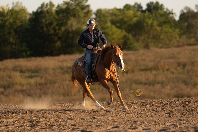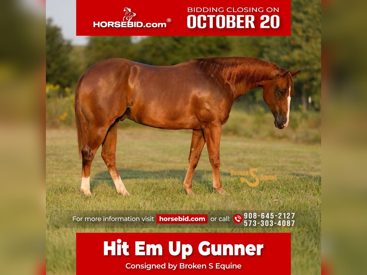 ♦️ 𝐭𝐡𝐞 𝐀𝐌𝐄𝐑𝐈𝐂𝐀𝐍 𝓕𝓪𝓵𝓵 𝓒𝓵𝓪𝓼𝓼𝓲𝓬 ♦️ Happening now thru MONDAY | OCTOBER 20th - Available EXCLUSIVELY on HorseBid's website! For more details and to register visit: www.Horsebid.com CONSIGNOR CONTACT: Broken S Equine Kieran 908-645-2127 or Beau 573-303-4087 LOCATION: Bogard, MO BREED: Quarter Horse REGISTERED: Yes REGISTERED NAME: Hit Em Up Gunner COLOR: Sorrel HEIGHT: 15 AGE: 3 GENDER: Gelding Bob is a 3 year old Quarter Horse gelding standing 15 hands high. He is by the famous, Gunner Dun It Again and out of a daughter of Wimpys Little Step. Bob is bred and trained for excellence, with the brain of an old soul schoolmaster. He has had 11 months of reining training, and has been continuing in a versatile training program here with us; ranch work, jumping, dressage, and going around with the kids. Absolutely anyone can safely ride and enjoy this gelding. He is user friendly and so tolerant to any rider or situation. Whether you want to excel in the show ring, or have a trustworthy and smart horse to enjoy at home - Bob is ready to be that parter for years to come. In the ring, Bob is ready to succeed in the reining pen, ranch riding, cow horse classes, or as a hunter/jumper. The best part about this horse is that you can really do it all with him. Under western tack, he circles well, has stylish spins, and a big stop. Anything you can do with a bridle on, you can do with it off. He has easy lead changes and smooth transitions. Under English tack, Bob rides like a hunter. He is putting together basic dressage tests and knows his lateral work. He is soft in the bridle and just overall a user friendly, forgiving horse to ride. He is an old soul through and through. On the trails and off property Bob acts like a seasoned pro everywhere he goes. Take him anywhere, do anything with him, and have a solid and reliable horse under you. You often forget his age, as he is always the quietest one of the group. He crosses any and all obstacles, is safe in traffic and on busy roads, and even does all the trail obstacle courses too! In the barn, Bob is Mr. Personality! He loves people and loves getting attention. He follows you around in the pasture, and is the first to the gate to greet you. He's happy living inside, or out, and is the easiest of keepers. ⚫️Bob is an easy keeper that requires no maintenance. We have a recent, clean vet check on file. ⚫️Our program aims to train and produce top quality horses and ponies for all disciplines and experience levels. Check out our website for testimonials! ⚫️We are located in Bogard, MO. We can help you arrange shipping anywhere! ⚫️For more information about Bob, or any of our other horses call or text us. Kieran 908-645-2127 Beau 573-303-4087