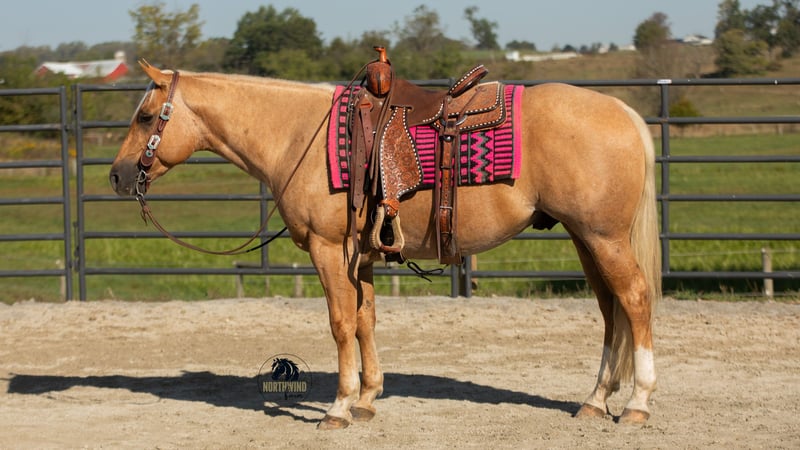 ♦️ 𝐭𝐡𝐞 𝐀𝐌𝐄𝐑𝐈𝐂𝐀𝐍 𝓕𝓪𝓵𝓵 𝓒𝓵𝓪𝓼𝓼𝓲𝓬 ♦️ Happening now thru MONDAY | OCTOBER 20th - Available EXCLUSIVELY on HorseBid's website! For more details and to register visit: www.Horsebid.com CONSIGNOR CONTACT: North wind farm 330-473-3521 LOCATION: Fredericksburg, OH BREED: Aqha REGISTERED: Yes REGISTERED NAME: Kid Cloudy COLOR: Palomino HEIGHT: 15.1 AGE: 4 GENDER: Gelding Kid Cloudy, “Cappuccino” is a 4 yr old registered AQHA gelding standing at 15hh. Cappuccino is well broke to ride and would make a great all around horse! He is very willing and fun to ride. He can be turned out with other horses and is easy to catch in the field! He stands nicely to be groomed and for tacking up. He loves attention and getting bathes. He loads into the trailer and travels well! He has a smooth and easy walk, trot, canter. He has a nice slow lope, he moves off of leg pressure and neck reins. He will pick up both leads, he stops good, and backs up nicely! He has a slow pivot and a nice side pass. He will go through all the obstacles, he isn’t scared of the tarp or the ball. He steps on to the tires and the block. He will cross the bridge as well. He will drag the log and doesn’t mind having a rope thrown off of her. Cappuccino is very well mannered and a lot of brains. He is great out on the trails. He crosses creeks, steps over logs and is surefooted going up and down the hills. He is calm and collected, and is spooky at all. He has been rode on the road and doesn’t mind the traffic. He is also used to being around dogs! He stands good for mounting as well! Cappuccino is a nice quiet gelding, that’s safe for anyone to ride! He is 100% sound and healthy! ⭐️North Wind Farm is renowned for its quality trail and all-around horses. Our horses are versatile and can excel in any discipline, making them perfect for riders of all levels. Whether you're looking for a reliable trail companion or a horse that can perform in various disciplines, North Wind Farm has the perfect match for you. Our commitment to excellence and passion for equine care ensures that each horse is well-trained, healthy, and ready to meet your needs. Contact us @ Tim (330) 600-8840 Lisa (330) 473-3521.