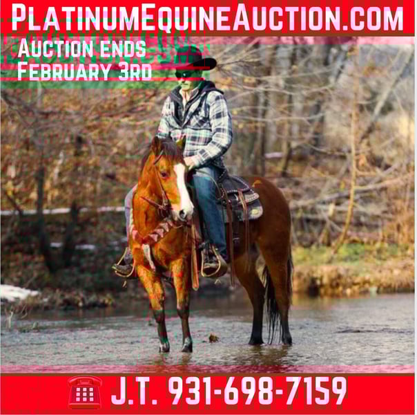 ONLINE AUCTION Place your bids at www.PlatinumEquineAuction.com Starting Bid $3500 Auction ends February 3rd, 2025 Need a new saddle? Check out White Rock Saddles on our website or Facebook! Ellie Mae is a 5yr old 51in quarter pony that’s as shapey and athletic as they come. Ellie Mae has been used in just about any possible situation you can put a horse and handles them all with ease. We have used her doing everything from working in the stockyards, gathering cattle in the pasture, leisurely trail rides, playing on the obstacle course, roping small calves and even the fun shows. Ellie Mae stands to be tacked, she’s great for the farrier, loves to be groomed and played with. One of our favorite things about Ellie Mae is she has more heart and try in a 51in pony than you will find in any big horse around. She’s the perfect prospect for a step up pony to go a compete in some very high level performance pony events and is suitable for just about anyone to get along with. If you are looking for that special pony with the build of a using horse, a heart / try the size of Texas and athleticism then come check her out and give her a try. Located in Santa Fe, TN. Contact J & S Equine 931-698-7159. ONLINE AUCTION Place your bids at www.PlatinumEquineAuction.com Starting Bid $3500 Auction ends February 3rd, 2025 Need a new saddle? Check out White Rock Saddles on our website or Facebook!
