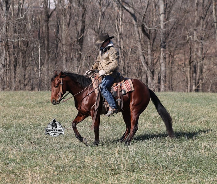 𝐀𝐝𝐚𝐦'𝐬 𝐇𝐨𝐫𝐬𝐞 & 𝐌𝐮𝐥𝐞 𝐂𝐨𝐦𝐩𝐚𝐧𝐲'𝐬 ✷𝑬𝒗𝒆𝒓𝒚 𝑴𝒊𝒍𝒆 𝑨 𝑴𝒆𝒎𝒐𝒓𝒚✷ 𝐄𝐗𝐂𝐋𝐔𝐒𝐈𝐕𝐄 𝐒𝐀𝐋𝐄 Happening now thru MONDAY | FEBRUARY 2nd - Available EXCLUSIVELY on HorseBid's website! For more details and to register visit: www.Horsebid.com CONSIGNOR CONTACT: Adams Horse and Mule Company 606-308-2461 LOCATION: Mt. Vernon, KY BREED: AQHA REGISTERED: Yes REGISTERED NAME: JLS Metallicboonsmal COLOR: Bay HEIGHT: 14.2 AGE: 5 GENDER: Gelding JLS Metallicboonsmal is a beautiful bright bay gelding, standing 14.2h, a 2021 model gelding with an All-Star lineup in his pedigree... Metallic Cat, High Brow Cat, Peptoboonsmal (both sides), CD Olena (both sides) and High Brow Hickory (both sides). If you are looking for a rope horse or real deal ranch horse, Metallic is your guy! He is a horse for all jobs, anything on the ranch from sorting to pasture roping, to trails up in the rugged mountains, put him in the ranch classes or back him in the box and collect a check... he will do it all and do it all- RIGHT! He handles all terrains on the trails, from steep slopes to rough rocky areas! He has penned cattle at the stockyards, worked at the feedlot, loaded trucks, roped and doctored sick ones. Metallic has a smooth jog, takes his leads in a nice slow lope on a draped rein. He is one hand broke, he spins both ways, sidepasses to open/shut gates and backs with ease. He has been exposed to all kinds of wildlife and works well with stock dogs. He is the same horse whether ridden daily or even if he is left off in the pasture. Metallic is one special horse with the mind, pedigree and experience that is highly sought after, don't miss this guy! Call Eric 606-308-2461 with any questions.