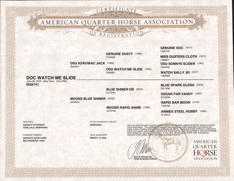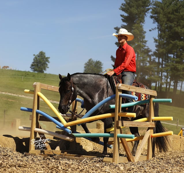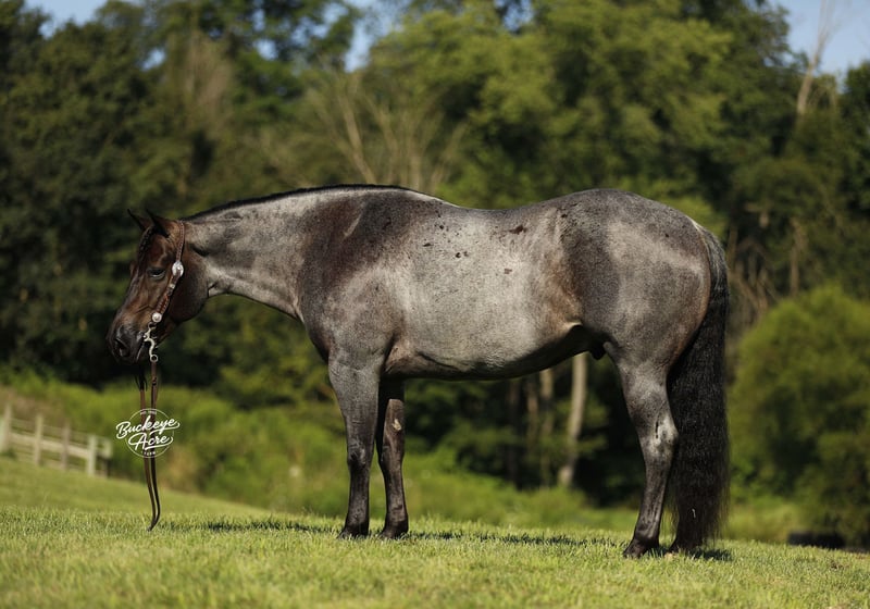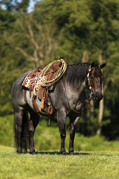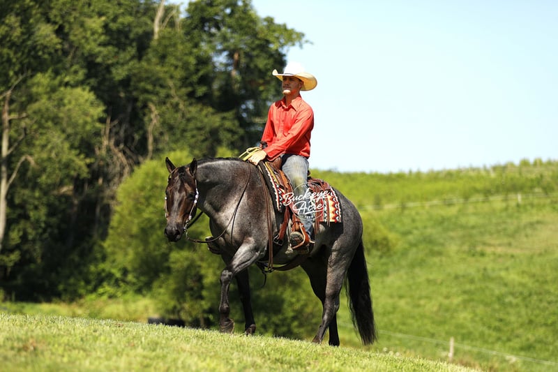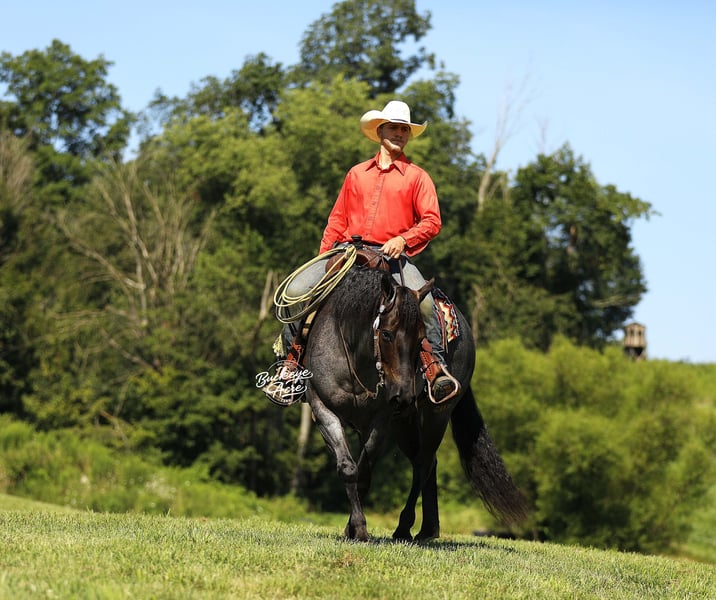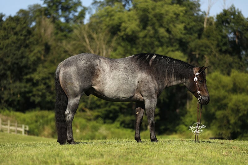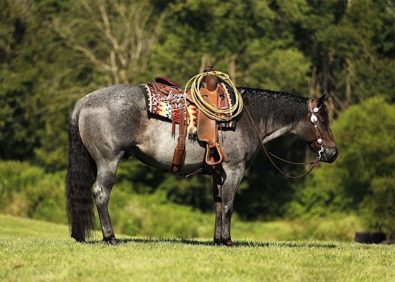 Wow, wow—we feel privileged to offer you this exceptional gelding! Meet Doc, a 2020 model blue roan AQHA gelding who stands at that perfect height of 14.3 hands. He has been part of our training program for almost two years, and from the very beginning, Doc has proven himself to be the kind of horse everyone dreams about owning—steady, versatile, and safe for any level of rider. During his time with us, Doc has been about everywhere. He has crossed creeks without hesitation, stepped over downed logs, and ridden state roads in traffic with total confidence. Whether it is winding trails, open fields, or busy streets, he takes every environment in stride. He is also solid and unbothered around gunshots, bullwhips, tarps, and jugs—nothing seems to shake his confidence. A true all-arounder, Doc has been ridden Western, English, bareback, and even bridle less. He offers three smooth, comfortable gaits—an easy slow trot, a beautiful extended trot, and a balanced canter. Show him one day, take him on a long trail ride the next, and let him babysit a beginner rider the day after that—he handles every job with the same calm, dependable attitude. He has even done a little roping and has a few fun tricks up his sleeve to impress your friends. Doc’s arena skills are well-polished—he neck reins, side passes, knows his leads, and is started on his spin. Best of all, he stays the same whether you ride him every day, once a week, or once a month. In the barn or pasture, Doc is a gentleman through and through. He is polite with other horses, content alone, and stands quietly for the farrier, in the wash bay, or in his stall. He will meet you at the gate every time, eager for attention and all the scratches you can give. Safe and dependable, Doc is the kind of horse you can trust with anyone—from a beginner to a senior rider, or even an advanced horseman who appreciates a trustworthy partner. His heart is as big as his beautiful blue roan coat, and he is ready to be your new best friend. If Doc sounds like the horse, you have been looking for, please call Duane at 330-231-2324 for more information or to schedule a time to see him in person.