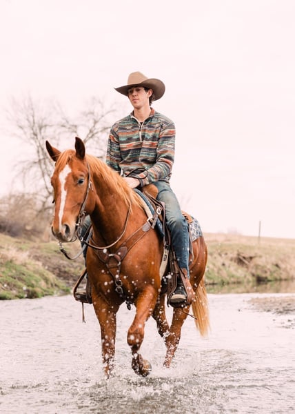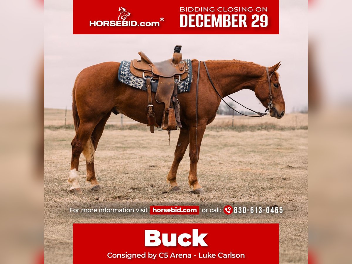 ⚜️ 𝓗𝓮𝓻𝓲𝓽𝓪𝓰𝓮 𝐖𝐢𝐧𝐭𝐞𝐫 𝓒𝓵𝓪𝓼𝓼𝓲𝓬⚜️ Happening now thru MONDAY | DECEMBER 29th - Available EXCLUSIVELY on HorseBid's website! For more details and to register visit: www.Horsebid.com CONSIGNOR CONTACT: C5 Arena - Luke Carlson 830-613-0465 LOCATION: Decorah, IA BREED: AQHA REGISTERED: Yes REGISTERED NAME: Smart Talkin Money COLOR: Sorrel HEIGHT: 14.3 AGE: 4 GENDER: Gelding Buck is a solid, well-built gelding standing 14.3 hands tall and weighs 1100 pounds at 4 years old. We have owned Buck since he was a weanling. He is a true barn favorite and seasoned rope horse with the heart, mind, and skills to do it all. He always meets you at the stall door and will walk up to you in the pasture to be pet and loved on. Buck is great in a herd or in a stall. He is soft in the face, one-hand neck rein, moves off leg pressure, stops hard, and rates cattle with ease. He is safe for all levels – confidence builder for beginners, but enough motor and athletic ability for experienced ropers. Buck is our goto horse for beginner riders as he is so patient and forgiving. Big time switch ender right here! Or he has the talent and ability to go in any direction. He is experienced on the head and heel side. He has been hauled and won on at jackpots! He stands quiet in the box and leaves off your hand. Buck is a horse that is very easy to rope on has all the speed you need. Buck is consistent and has a nice bend in the corner. He loads easily in the trailer and stands quietly tied. This horse is so special as he is athletic but has a gentle personality. Buck will do all aspects of ranch work like pushing, gathering, and sorting cattle. He will go wherever you point him, and is very quick to learn. He is confident and will cross fallen logs that are in front of him. He doesn’t hesitate to walk through water and goes through all types of terrain. This horse is the kind everyone gets along with – honest, kind-eyed, and always gives 100%. Buck is a solid, reliable, go-anywhere-do-anything type. We can’t say enough good things about this gelding. He has always been sound and healthy. Current on deworming, farrier, and coggins. Located in Decorah Iowa. FMI call Luke 830-613-0465.