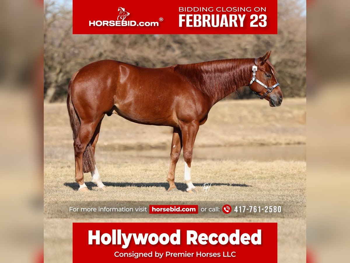 💎 𝐓𝐇𝐄 𝓓𝓲𝓪𝓶𝓸𝓷𝓭 𝐒𝐇𝐎𝐖𝐂𝐀𝐒𝐄 💎 Happening now thru MONDAY | FEBRUARY 23rd - Available EXCLUSIVELY on HorseBid's website! For more details and to register visit: www.Horsebid.com CONSIGNOR CONTACT: Premier Horses LLC 417-761-2580 LOCATION: Buffalo, Missouri 65622 BREED: AQHA REGISTERED: Yes REGISTERED NAME: Hollywood Recoded COLOR: Sorrel HEIGHT: 14.3 AGE: 5 GENDER: Gelding Hollywood Recoded is an exquisite copper penny colored sorrel gelding with undeniable presence. His unique striped face, three white socks, long flowing mane, and thick tail make him stand out in any setting. He has a baby doll head, a strong body, and clean legs. He is balanced, correct, and built to stay sound. He has the kind of look that gets noticed in the warm-up pen and remembered when the class is over. Hollywood is a finished reiner and an NRHA money earner that has only been shown a limited number of times. He is sired by Electric Code (LTE $204,317.26; progeny earnings over $1.4 million) and out of Dunits Juice (LTE $2,416.19; progeny earnings $27,881.86). His pedigree speaks for itself. Over the last six months, Hollywood has been in training under Trent Harvey’s prestigious program, continuing to be polished and maintained at a high level. Hollywood has been shown from Open to Novice level of riders. He offers strong, confident spins, smooth and correct lead changes, round and controlled circles, and deep, eye-appealing stops. He carries himself with natural cadence and stability. He has a beautiful extended trot and comes back to you willingly when asked. He can complete his reining maneuvers bridleless, which shows just how broke and responsive he truly is. Outside the show pen, Hollywood is just as enjoyable. He would transition easily into ranch riding or ranch trail. He goes over obstacles without hesitation and crosses bridges quietly. He is steady on the trails and comfortable to ride all day, crossing water with ease. He will carry the American flag with confidence. He can check the mail or gather cattle when needed. He is ready for someone who wants a competitive show horse today and a versatile partner for years to come. If you are looking for one that combines talent, pedigree, looks, and disposition, He is the complete package. Hollywood has passed a pre-purchase exam and has x-rays on file. .CONSIGNOR CONTACT: Premier Horses LLC 417-761-2580 LOCATION: Buffalo, Missouri 65622 BREED: AQHA REGISTERED: Yes REGISTERED NAME: Hollywood Recoded COLOR: Sorrel HEIGHT: 14.3 AGE: 5 GENDER: Gelding Hollywood Recoded is an exquisite copper penny colored sorrel gelding with undeniable presence. His unique striped face, three white socks, long flowing mane, and thick tail make him stand out in any setting. He has a baby doll head, a strong body, and clean legs. He is balanced, correct, and built to stay sound. He has the kind of look that gets noticed in the warm-up pen and remembered when the class is over. Hollywood is a finished reiner and an NRHA money earner that has only been shown a limited number of times. He is sired by Electric Code (LTE $204,317.26; progeny earnings over $1.4 million) and out of Dunits Juice (LTE $2,416.19; progeny earnings $27,881.86). His pedigree speaks for itself. Over the last six months, Hollywood has been in training under Trent Harvey’s prestigious program, continuing to be polished and maintained at a high level. Hollywood has been shown from Open to Novice level of riders. He offers strong, confident spins, smooth and correct lead changes, round and controlled circles, and deep, eye-appealing stops. He carries himself with natural cadence and stability. He has a beautiful extended trot and comes back to you willingly when asked. He can complete his reining maneuvers bridleless, which shows just how broke and responsive he truly is. Outside the show pen, Hollywood is just as enjoyable. He would transition easily into ranch riding or ranch trail. He goes over obstacles without hesitation and crosses bridges quietly. He is steady on the trails and comfortable to ride all day, crossing water with ease. He will carry the American flag with confidence. He can check the mail or gather cattle when needed. He is ready for someone who wants a competitive show horse today and a versatile partner for years to come. If you are looking for one that combines talent, pedigree, looks, and disposition, He is the complete package. Hollywood has passed a pre-purchase exam and has x-rays on file. .