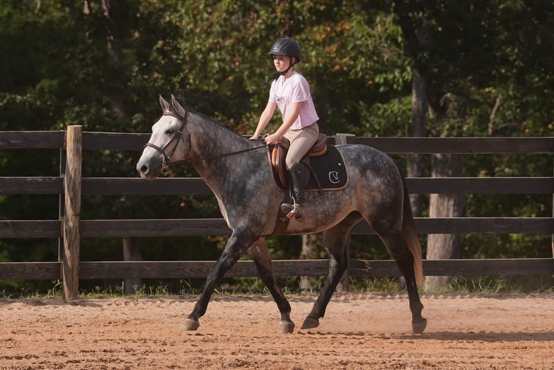 🍂 𝓐𝓾𝓽𝓾𝓶𝓷 𝑨𝑳𝑳 𝑺𝑻𝑨𝑹 𝑳𝑰𝑵𝑬𝑼𝑷 🍂 Happening now thru MONDAY | OCTOBER 6th - Available EXCLUSIVELY on HorseBid's website! For more details and to register visit: www.Horsebid.com CONSIGNOR CONTACT: Carolina Sport Horses 704.249.8500 LOCATION: Clover SC BREED: Quarter Horse REGISTERED: No REGISTERED NAME: Corsica COLOR: Dapple Gray HEIGHT: 14.3 AGE: 5 GENDER: Gelding Corsica is a 5 year old Quarter Horse gelding standing 14.3 hands high. This guy is the perfect family horse. He was born and raised on one farm and coming to our place was his first time leaving home. Most horses need time to settle but not Corsica. Pull him out of the pasture every day, or once a month, and have the same horse every time. He packs the kids around in the ring, on the trails, and on hunter paces. He goes anywhere you point him, bravely and honestly. His size is ideal for a family, as the little ones won't feel over faced, yet still being big enough for the adults to enjoy. His personality is the best! He loves to give back scratches and kisses, and will stand around for hours to be loved on. Corsica loves his people, and will gladly do any job with any rider, from the cross country course, trail rides, dressage, and more! In the ring, Corsica is straightforward and tolerant. He is doing first level dressage tests and will pop over small jumps. The kids are always choosing him for their riding lessons (Gracie's FAVORITE), and taking him out on hacks afterwards. He will ride in a frame, or on a loose rein, he's soft in the bridle and very easy to ride. His canter is the smoothest you'll find! He picks up both leads, has great walk to canter transitions, and is easily adjustable. Kids, and adults, of all ages and experience levels have ridden him. On the trails and off property, Corisca is a very good boy. He's gone on lots of hunter paces with the kids and always gets his rider to the other side, even if they don't do the best job of setting him up. He trail rides alone or in a group, and is happy leading or following the pack. He is as point and shoot as one can get. He will bravely cross any obstacle, river, bank, etc that you ask him to. He is a reliable and steadfast partner, in and out of the arena. Corisca crosses water, logs, is safe in traffic, and is quiet with other animals and livestock. Load him up and take him anywhere and know he will be the same horse on or off property. He is a gentleman to trailer and a breeze to go places with. He is so much fun on the cross country course! He jumps around all of the questions with ease, and is simple enough for a kid, pony clubber, or novice rider to jump around the course with. In the barn, Corsica is a favorite! If you see his video clips, you can see that the kids are always all over him. He absolutely adores people, and is the biggest love bug always gently nuzzling you and giving you scratches with his nose. Though he is in your pocket, he is still very polite and well mannered. Corsica is never pushy or rude - he is quite the gentleman! Corsica is a good boy when stalled, and currently lives out 24/7 weather permitting in a mixed herd. He gets along well with others and is the easiest of keepers. Corisca requires no maintenance, has no quirks, and is an overall solid citizen that everyone loves and enjoys!