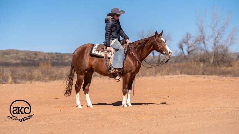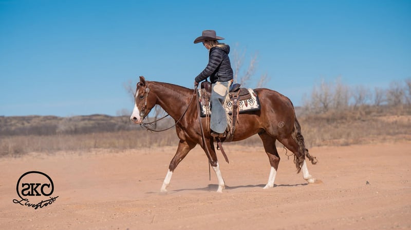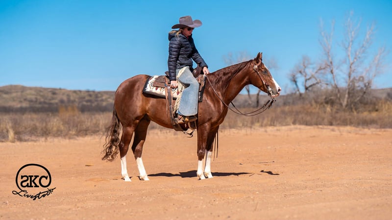 ⚜️𝓽𝓱𝓮 𝐆𝐎𝐋𝐃 𝓢𝓮𝓵𝓮𝓬𝓽⚜️ Happening now thru MONDAY | MARCH 23rd - Available EXCLUSIVELY on HorseBid's website! For more details and to register visit: www.Horsebid.com CONSIGNOR CONTACT: SKC Livestock 806-282-7093 LOCATION: Canyon, TX BREED: Quarter REGISTERED: Yes REGISTERED NAME: MR WRANGLER WHIZ GUN COLOR: Sorrel HEIGHT: 15 AGE: 5 GENDER: Gelding MR Wrangler Whiz Gun aka Snoopy is 15 hands on the dot, this gelding is stunning, and has an endless amount of personality, the presence to get you noticed. Snoopy was started in a reining program and then went on to be used on the ranch and prepared for the Ranch classes. He is absolutely gentle every day you saddle him even after time off and always shows up with a willing eager attitude. Snoopy is also a beautiful mover, easy jog, beautiful exited trot and slow easy lope. This horse is all class. He has perfect spins fast or slow and is an easy stopper. Snoopy is youth, beginner and non pro friendly. He’s also a superstar outside crossing water, rocks, inclines, and busy roads like an old season pro. We have also used snoopy to gather, ship, and doctor sick cattle, he’s extremely handy to have around if there is a job to be done! My favorite thing about Snoopy is how solid and stylish he is. At our house Snoopy is always around dogs, machinery, semis, and all the chaos and it never phases him. Please call us with any questions we’d love to chat with you about Snoopy.