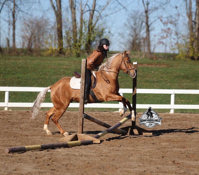 He is consigned to the COWGIRL CADILLACS Sale in Wickenburg, AZ on February 20-21st. You can bid online or bid in person. There is a preview day before the sale or you can come ride him prior to the sale in Mt. Vernon, KY. Register to bid at www.CowgirlCadillacs.com More info at www.AdamsHorseAndMuleCo.com $10000 starting bid CHEX this guy out!!! Gunners Whimpy Chex is a 2021 model reg AQHA, gelding that is standing 15.1hh with a very stocky build. Gunner has something to offer everyone… if you want pretty, he is wearing a golden coat, has a heart of gold and has four white socks with a thin blaze to go along with it, making a perfect combination of chrome and class. If you are a pedigree person… Gunner has an all-star lineup in his family tree, ML Gunnerito who is sired by the legendary Pale Face Dunnit, Hollywood Dun It, Colonels Smoking Gun, Gallo Del Cielo (AKA Rooster) and Nu Check To Cash… and he only gets more impressive once you get in the saddle! To start with Gunner is trained to lay down on cue. He knows all the reining maneuvers and would be a great horse to put in the ranch shows! He lopes nice circles, slowly on a draped rein, has a great stop, spins both ways, side passes to open/shut gates and has a good reverse. Gunner has a great mind, he is very laid back and loves attention. He enjoys being pampered by the kids whether that be a spa day with a bubble bath or getting glittered up for a photoshoot. Although he is a preppy guy, he is always up for a fun trail ride through the mud and rough country! Gunner has carried the kids through the rough rocky terrain, deep water, thick mud and up/down steep slopes. He has been ridden in several different states, never gets in a hurry and is very sure footed making him a great ride for a beginner type rider. Gunner has been roped off of out of the box on the heel side and he will put you in position to get an honest shot at the heels every time. He has been ridden around the ranch, herded, sorted and pasture roped. Things are always calm and quiet out on the trails and around the ranch but don’t worry, Gunner knows the sound of a roaring rodeo crowd of 3000 people, screaming and cheering as the speakers blare Kid Rock’s song “Born Free”, as he lopes around the arena carrying the flag at the grand entry. While at the rodeo Gunner was been used to sort, pen and load rodeo bulls. The girls also used him to give “pony rides” on at 4 different rodeos. They had all ages of kids and adults stand in line for a ride on their horses. Gunner has been ridden down the highways, through town, the drive thru, by Walmart and he will be traffic safe! He has been under English tack and will go over the rails with ease. Gunner is not spooky and has been around tarps, wind dancers, bull whips and gun fire. Gunner has been Movie Star good looks, an All-Star pedigree, Rideability, Safe, Smart, Experienced, Versatile… yes he certainly does CHEX all of the boxes!!! Gunner is available to ride and see in Mt. Vernon, KY until the week of the sale Feb. 16-21. Call for more info or if you have any questions 606-308-2461. Go to visit our website for more pics and a video www.AdamsHorseAndMuleCo.com AHAMC has been in the horse business and sold horses over the internet since 2005. We have a long track record of success with hundreds of happy customers. We work hard to match riders with the correct horses and specialize in beginner safe, family friendly horses that have been used and checked out by our family! We can set up transportation anywhere in the US and look forward to working with you. He is consigned to the COWGIRL CADILLACS Sale in Wickenburg, AZ on February 20-21st. You can bid online or bid in person. There is a preview day before the sale or you can come ride him prior to the sale in Mt. Vernon, KY. Register to bid at www.CowgirlCadillacs.com More info at www.AdamsHorseAndMuleCo.com $10000 starting bid