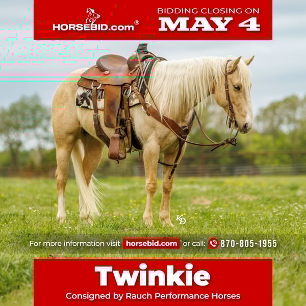 ▪️▫️◾️𝐭𝐡𝐞 𝑴𝒂𝒚 𝐒𝐞𝐥𝐞𝐜𝐭◾️▫️▪️ Happening now thru MONDAY | MAY 4th - Available EXCLUSIVELY on HorseBid's website! For more details and to register visit: www.Horsebid.com CONSIGNOR CONTACT: Rauch Performance Horses 870-805-1955 LOCATION: Herrick, IL BREED: AQHA REGISTERED: Yes REGISTERED NAME: SAILING PEPTOS CASH COLOR: Palimono HEIGHT: 14 AGE: 6 GENDER: Gelding Sailing Peptos Cash aka Twinkie is a handy, well-rounded 14hh gelding that has been used extensively across all aspects of ranch work. He’s the kind you can rely on day in and day out, whether you’re dragging calves, gathering, or handling whatever the day throws at you. He’s been there and done the job, making him a dependable partner with a solid work ethic and the right mindset to get things done. Twinkie is ready to be hauled in the breakaway and already has experience in the tie-down, along with about 90 days of heeling. He’s been exposed to a variety of situations and handles whatever is thrown at him with ease, showing both his versatility and willingness to adapt across multiple events. He tracks cattle well, stays honest in the box, and gives you a consistent, confident feel every time you nod your head. He is user-friendly with a good handle and a willing attitude. He’s the kind that makes his rider look good and is comfortable both inside the arena and out on the ranch. Whether you’re looking for something to go compete on, continue finishing out, or just a dependable horse to use every day, Twinkie checks all the boxes.