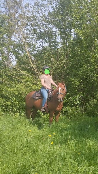 Oak is very eager to learn and people-oriented, very easy to handle. He likes to offer his skills in ground work and is happy when he is praised. He masters all basic gaits under the rider. He is a reliable partner in the field, alone or accompanied by a horse or dog. He has already learned the basics of the reining disciplines. Oak came to us when he was just 3 years old. He was initially trained by a rider. More recently he has been ridden by my daughter and myself. He has no known health problems. As he only had shoes at the very beginning and has now been barehoof for a long time, he has never been overused by us. He has been kept in open stables as well as in boxes with daily paddock access and all-day grazing in the summer. Horse company is very important to him. He knows how to behave well in small and large groups. It is with a heavy heart that we are looking for a good new home for him. My daughter no longer wants to ride and it is too much for me alone. He should be encouraged according to his age and preferably be given a permanent home.