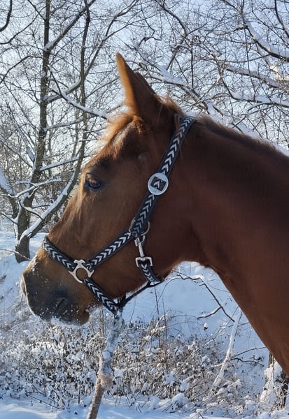 Oak est très désireux d'apprendre et attaché aux humains, il est très facile à manipuler. Lors du travail au sol, il aime montrer ses compétences et est heureux lorsqu'il est félicité. Sous le cavalier, il maîtrise toutes les allures de base. En extérieur, il est un partenaire fiable, que ce soit seul ou accompagné de chevaux ou de chiens. Il a également déjà été initié aux bases des disciplines de nettoyage. Oak est arrivé chez nous à peine âgé de 3 ans. Au début, il a été formé par une cavalière. Récemment, il a été monté par ma fille et moi-même. Sur le plan de la santé, il n'a aucune restriction connue. Comme il n'a eu des fers que très brièvement et qu'il est maintenant un cheval sans fer depuis longtemps, il n'a jamais été surmené par nos soins. Chez nous, il a connu à la fois un hébergement en stabulation libre et en box avec sortie quotidienne au paddock, et en été, il a accès à l'herbe toute la journée. La compagnie des chevaux est très importante pour lui. Il sait se comporter correctement dans des groupes petits ou plus grands. Nous cherchons à contrecœur un bon nouveau foyer pour lui. Ma fille ne souhaite plus monter et pour moi, c'est trop. Il devrait être encouragé en fonction de son âge et idéalement obtenir un foyer permanent.