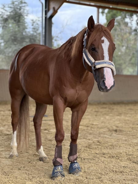 With a heavy heart, I am selling my Quarter Horse gelding, born in 2019 and approximately 1.47m tall. He is a rather sensitive horse that needs an empathetic but consistent person who has experience with young, sensitive horses. He has a friendly nature and is calm and unflappable when handled on the ground and during trail walks. He is familiar with bicycles, cars, and tractors, and remains kind and unflappable in these situations. Riding-wise, he is still quite green but always behaves well. However, he requires an experienced person who is secure in giving aids. He is not a beginner's horse. As he suffers from Equine Asthma, he needs a low-dust diet and environment, as well as plenty of time outdoors. He is fully capable and symptom-free. I wish for him to find a loving home with an experienced person who understands and enjoys working with young horses. If you are seriously interested, I would appreciate a message with a brief introduction.