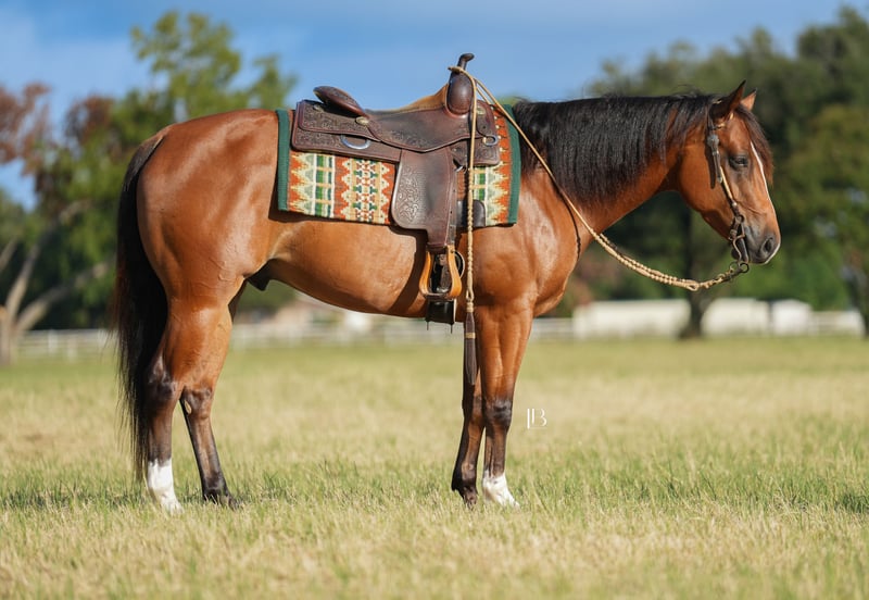 ⚜️𝐓𝐇𝐄 𝐅𝐀𝐋𝐋 𝐇𝐄𝐑𝐈𝐓𝐀𝐆𝐄 𝐂𝐋𝐀𝐒𝐒𝐈𝐂⚜️ Happening now thru MONDAY | NOVEMBER 3rd - Available EXCLUSIVELY on HorseBid's website! For more details and to register visit: www.Horsebid.com CONSIGNOR CONTACT: LB Equine Sales LLC 214-449-8028 LOCATION: Terrell, TX BREED: AQHA/APHA REGISTERED: Yes REGISTERED NAME: Be Careless COLOR: Bay HEIGHT: 14.2 AGE: 5 GENDER: Gelding If a bay with chrome is your kryptonite, meet your match – the one and only Bilbo! This 5-year-old AQHA/APHA registered gelding stands 14.2 hands and is by Lopin My Best, out of a Certain Potential / Zippos Mr Good Bar mare. Handsome, kind, and endlessly personable, Bilbo has that irresistible “puppy-dog” personality the ladies just adore! Bilbo is the definition of tried and true. His movement is nothing short of dreamy — a slow, steady jog you can drop your reins on, and a smooth, rhythmic canter that feels like a Cadillac. He’s soft in the bridle, light to the aids, and exceptionally broke — you won’t find one easier or more comfortable to ride. Youth and old lady safe - this one you can count on! Honest and reliable, Bilbo is as straightforward as they come — he has never offered to buck, rear, and has zero attitude. He is a stall to arena kinda guy, no prep needed. He’s been shown locally and makes an ideal all-around mount for a youth or amateur rider. Bilbo is versatile enough to shine in English, Western, or Ranch classes— and is just as happy cruising down the trail. He’s seen the sights — bridges, water crossings, fallen logs — and handles it all with quiet confidence. He’s pushed cattle at local roping practices, checked fences, and never gets in a hurry. Easy to catch, willing to please, and sweet as they come — Bilbo truly has that golden retriever disposition everyone wants in a gelding. Homegrown and breeder-owned before joining our program this summer, Bilbo is the kind of horse that makes you fall in love with riding all over again. Some lucky youth, amateur, or old lady is going to be smitten with him. Bilbo is always on his best behavior, not only is he friendly on the ground but he is kind to others in the field. I recently used him to babysit the freshly weaned babies in the pasture – and he was patient and quiet with them. He stands tied, great for vet/farrier, respectful in a stall, loads/unloads, and hauls off property like a seasoned pro. Purchase with confidence! Bilbo comes with a recent pre-sale veterinary exam and full set of radiographs on file. He sells 100% sound and is up to date on dental, farrier, Coggins, and all care. All paperwork is in order, and will be signed between buyer and seller at the conclusion of the sale. Shipping can be easily arranged to any location. Safe, sound, sweet — and as dependable as they come. Bilbo is truly the kind of gelding everyone’s looking for but few ever find.