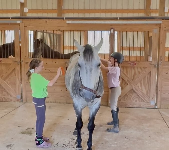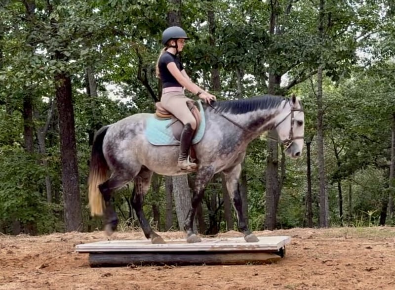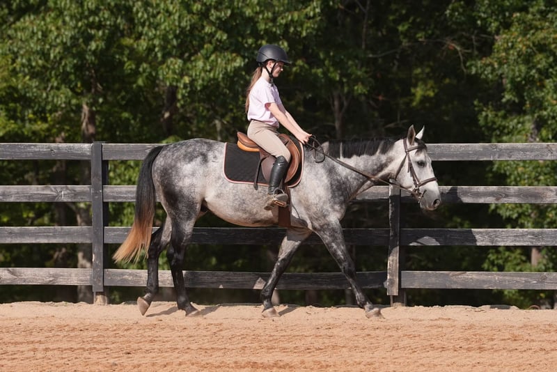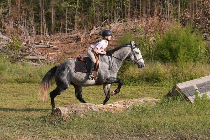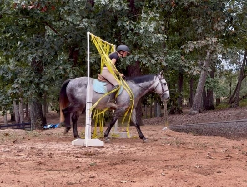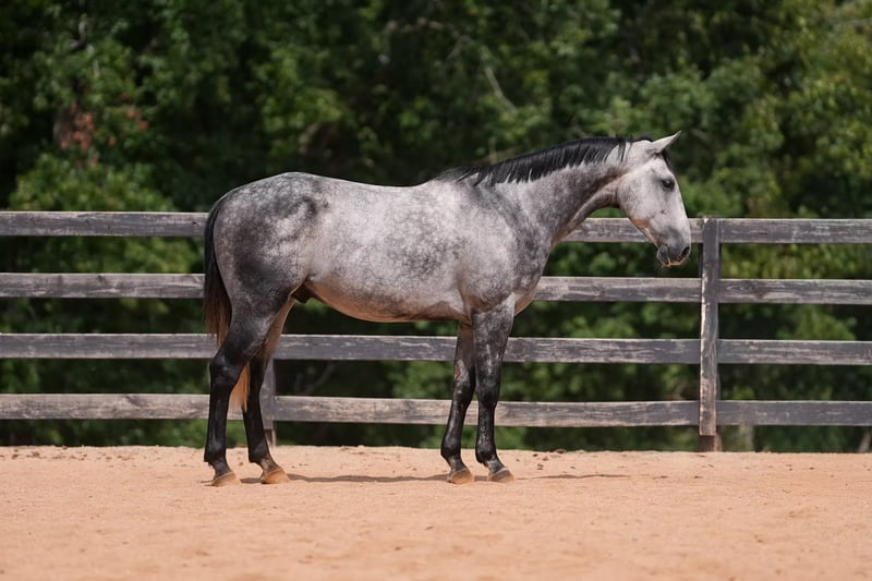 🍂 𝓐𝓾𝓽𝓾𝓶𝓷 𝑨𝑳𝑳 𝑺𝑻𝑨𝑹 𝑳𝑰𝑵𝑬𝑼𝑷 🍂 Happening now thru MONDAY | OCTOBER 6th - Available EXCLUSIVELY on HorseBid's website! For more details and to register visit: www.Horsebid.com CONSIGNOR CONTACT: Carolina Sport Horses 704.249.8500 LOCATION: Clover SC BREED: Quarter Horse REGISTERED: No REGISTERED NAME: Corsica COLOR: Dapple Gray HEIGHT: 14.3 AGE: 5 GENDER: Gelding Corsica is a 5 year old Quarter Horse gelding standing 14.3 hands high. This guy is the perfect family horse. He was born and raised on one farm and coming to our place was his first time leaving home. Most horses need time to settle but not Corsica. Pull him out of the pasture every day, or once a month, and have the same horse every time. He packs the kids around in the ring, on the trails, and on hunter paces. He goes anywhere you point him, bravely and honestly. His size is ideal for a family, as the little ones won't feel over faced, yet still being big enough for the adults to enjoy. His personality is the best! He loves to give back scratches and kisses, and will stand around for hours to be loved on. Corsica loves his people, and will gladly do any job with any rider, from the cross country course, trail rides, dressage, and more! In the ring, Corsica is straightforward and tolerant. He is doing first level dressage tests and will pop over small jumps. The kids are always choosing him for their riding lessons (Gracie's FAVORITE), and taking him out on hacks afterwards. He will ride in a frame, or on a loose rein, he's soft in the bridle and very easy to ride. His canter is the smoothest you'll find! He picks up both leads, has great walk to canter transitions, and is easily adjustable. Kids, and adults, of all ages and experience levels have ridden him. On the trails and off property, Corisca is a very good boy. He's gone on lots of hunter paces with the kids and always gets his rider to the other side, even if they don't do the best job of setting him up. He trail rides alone or in a group, and is happy leading or following the pack. He is as point and shoot as one can get. He will bravely cross any obstacle, river, bank, etc that you ask him to. He is a reliable and steadfast partner, in and out of the arena. Corisca crosses water, logs, is safe in traffic, and is quiet with other animals and livestock. Load him up and take him anywhere and know he will be the same horse on or off property. He is a gentleman to trailer and a breeze to go places with. He is so much fun on the cross country course! He jumps around all of the questions with ease, and is simple enough for a kid, pony clubber, or novice rider to jump around the course with. In the barn, Corsica is a favorite! If you see his video clips, you can see that the kids are always all over him. He absolutely adores people, and is the biggest love bug always gently nuzzling you and giving you scratches with his nose. Though he is in your pocket, he is still very polite and well mannered. Corsica is never pushy or rude - he is quite the gentleman! Corsica is a good boy when stalled, and currently lives out 24/7 weather permitting in a mixed herd. He gets along well with others and is the easiest of keepers. Corisca requires no maintenance, has no quirks, and is an overall solid citizen that everyone loves and enjoys!