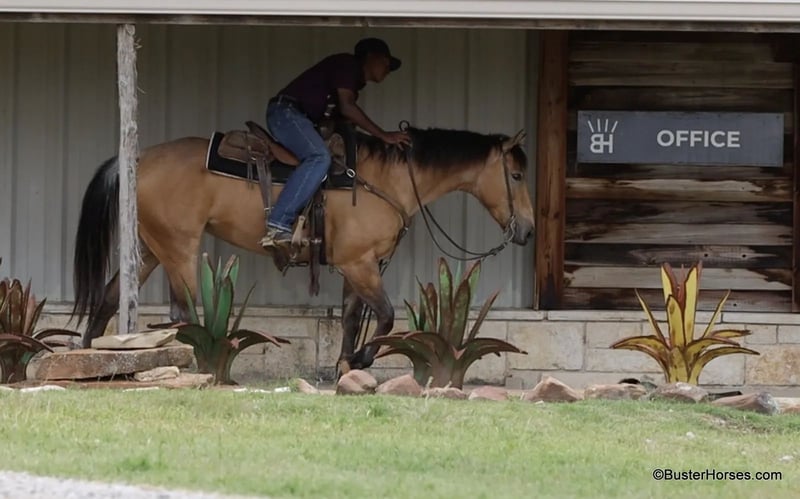 ONLINE AUCTION Place your bids at www.PlatinumEquineAuction.com Starting Bid $3500 Auction ends May 25th, 2025 Need a new saddle? Check out White Rock Saddles on our website or Facebook! Fox has had tons of real working miles outside, she has been worked outside on a big ranch and has tons of miles in the feedlot. She came out of big cattle country, and she has a lot of miles and experience under her belt at only 5 years old and 15hh. This mare acts just like a regular seasoned ranch gelding. She goes anywhere that you point her on a big long relaxed rein and neck reins well. She rides old-school, one-handed broke, very simple and uncomplicated to ride. She takes both leads, turns around both ways, side passes, has a big stop, and works a gate like a pro. She has been roped off a ton outside and in the pens and would be a great prospect that would take quickly to the team roping or the breakaway. She has been ridden outside over all sorts of terrain and knows the deal. She loves the water, and is relaxed handling rough terrain, ditches, rocky footing, and creeks. She is seasoned and confident out on the trail, happy to go out alone, and rides well in a group of horses as well. She could care less if you leave the other horses or leave the barn. This mare is no non-sense, been there, done that and seen that. She was also awesome riding through town and would probably do great at parades or crowded events, she really enjoyed the commotion and all the new things to look at. If you have been looking for a gorgeous gelding and just keep getting outbid…then don’t miss this mare, she’s been used just like a gelding her entire life and is the real deal. Please call anytime if you have any questions about her, Buster Horses Ashley 214-605-7174 Fox is located in Weatherford, TX – one hour from Dallas / Fort Worth International Airport. She is an easy day trip or fun overnight trip to come try out, from anywhere! We are experienced knowledgeable sellers and we can help with quickly arranging affordable shipping to any buyer’s location – we have experience shipping horses worldwide – including regularly to Hawaii, Canada, Mexico, Europe, and South Africa. Go to our Facebook page Buster Ranch and check our website for buyer reviews, for more videos, additional info, etc: https://busterhorses.com/Fox ONLINE AUCTION Place your bids at www.PlatinumEquineAuction.com Starting Bid $3500 Auction ends May 25th, 2025 Need a new saddle? Check out White Rock Saddles on our website or Facebook!