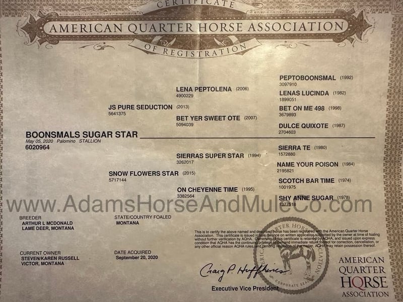 Questo cavallo viene venduto a Cannon Falls, MN il 1° febbraio ed è consegnato a www.NorthStarHorseSale.com È possibile fare offerte online, fare offerte di persona e venire a vedere in anteprima ogni cavallo e cavalcarlo personalmente prima di fare offerte. La spedizione è disponibile ovunque negli Stati Uniti. Offerta iniziale di 5000 dollari, tutti i cavalli vengono venduti sani. Se Barbie potesse scegliere un cavallo, sono sicuro che Boonsmals Sugar Star sarebbe quello giusto! Boon è alto 15H, pesa 1250lb, è tanto largo quanto alto e altrettanto dolce. Boon è un modello 2020 Reg AQHA, castrone con focature e criniera e coda bianche. Boon è ben allevato e risale a Peptoboonsmal nella parte superiore e a Sierra Te nella parte inferiore. Se state cercando di rapinare banche o di fuggire velocemente... fareste meglio a trovare un altro cavallo, perché Boon ama la vita rilassata e la velocità preferita è quella lenta e facile, il che lo rende un cavallo perfetto per la famiglia! Qualsiasi età, dai 5 agli 85 anni, può cavalcare questo cavallo perché è sicuro al 100%! Boon è fantastico sui sentieri... pendii ripidi, terreni rocciosi, ruscelli, tronchi, fossati... li attraversa tutti con facilità e non ha mai fretta! Ma se avete bisogno di giocare al cowboy, Boon uscirà e lavorerà tutto il giorno per voi. È stato utilizzato nel ranch per il roping al pascolo e il doctoring. Reggerà qualsiasi cosa gli venga legata e non si arrabbia quando si presenta una situazione difficile. Boon si muove lentamente e con facilità in cerchi piacevoli, gira in entrambi i sensi, si ferma in scivolata... ha le mosse giuste per andare d'accordo con il suo bell'aspetto! Boon è il cavallo che può far sembrare e sentire la nonna una cowgirl, è il cavallo che tutta la famiglia può cavalcare e che tutta la famiglia amerà! Aspetto, pedigree, addestramento, esperienza, sicurezza... Non c'è da stupirsi che Barbie abbia scelto questo cavallo! Non esitate a chiamare Eric 606-308-2461 per qualsiasi domanda.