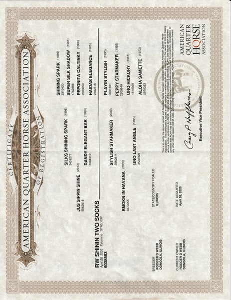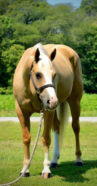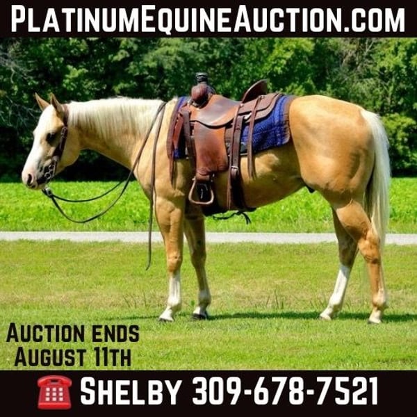 ONLINE AUCTION Place your bids at www.PlatinumEquineAuction.com Starting Bid $3500 Auction ends August 11th, 2024 Need a new saddle? Check out White Rock Saddles on our website or Facebook! Weaver’s Quarter Horses is proud to present to you, ARW Shinin Two Socks who is a 2020 Model Registered AQHA, Golden Palomino that has a nice pedigree! Talk about some wow factor! This guy is an absolute eye catcher with the puppy dog personality that people die to have out in their pasture. Standing 15 hands and built like a brick house, Two Socks is made to last. He is a very quick learner with a willing personality that has taken everything we’ve thrown at him in stride. He’ll pick you up from the fence or mounting block, track the roping dummy, carry a flag, mosey along in a parade, drag barrels, cross anything and go anywhere that you point him. He is great on the trails, he will cross creeks, ditches, go over rough terrain and handle steep slopes. He will also be tracking and sorting cattle for the next two weeks. This guy is still young enough to finish in the discipline of your desire and go to the show pen or just enjoy him as an elite ranch or trail horse! Two Socks has it all… he’s as handsome as can be with a great demeanor, he rides anywhere that you ask him, he is well built, has that golden palomino coal and he has excellent breeding that is just the cherry on top. To discuss more about Two Socks or come try him out please Call Weaver Quarter Horses Shelby 309-678-7521 or Lewy 618-322-2322 Located in Shobonier, IL. ONLINE AUCTION Place your bids at www.PlatinumEquineAuction.com Starting Bid $3500 Auction ends August 11th, 2024 Need a new saddle? Check out White Rock Saddles on our website or Facebook!