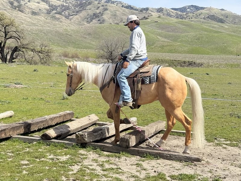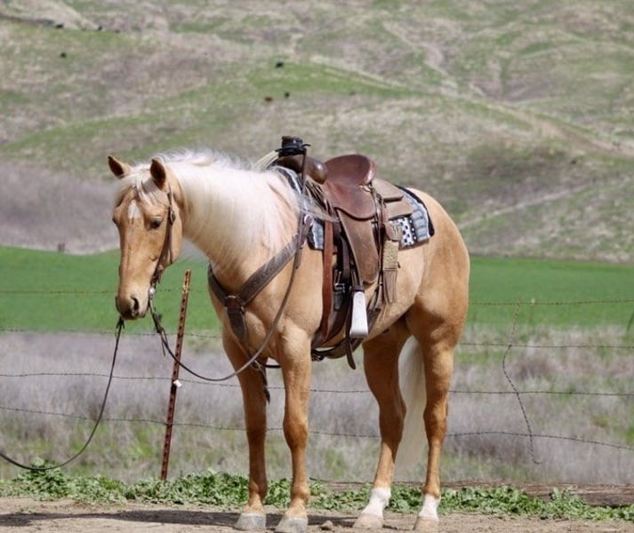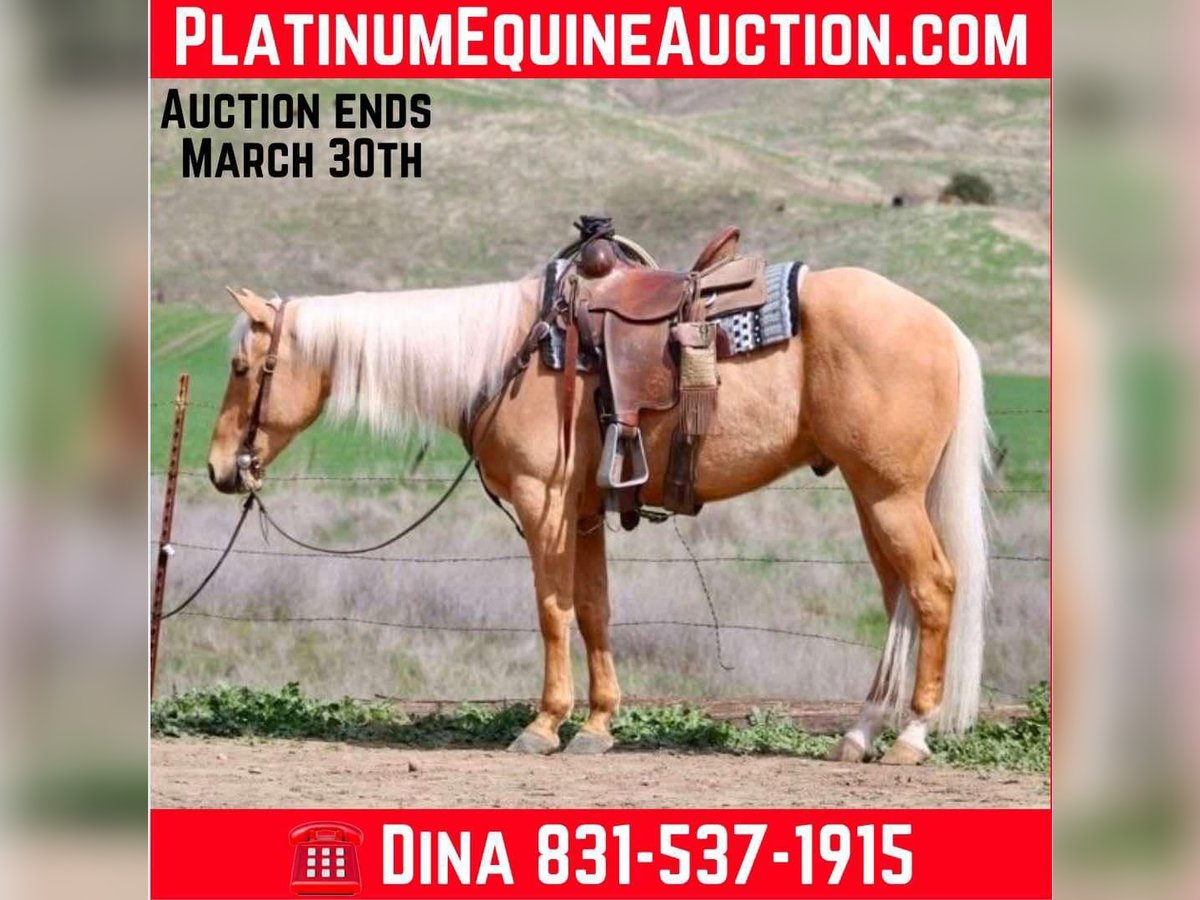 ONLINE AUCTION Place your bids at www.PlatinumEquineAuction.com Starting Bid $3500 Auction ends March 30th, 2025 Need a new saddle? Check out White Rock Saddles on our website or Facebook! Dorado is truly a one-of-a-kind horse that you don’t want to miss out on. With his beautiful palomino gold coat and flowing long mane, he is a stunning sight to behold. Standing at 15.1 hands tall and 5 years old, he has the kindest and sweetest personality that you will ever encounter in a horse. One of the most remarkable things about Dorado is how safe he is. You can trust him completely when riding as he has the soul of a true saint. Dorado remains calm and composed at all times, making it easy for anyone to take him anywhere they desire. He has been on countless trail rides and can easily navigate through any terrain – be it hills, branches, or water – with confidence. Dorado has been used on the ranch and is asset to have in the barn. He is the one you can trust with anyone and will get the job done. Gathering. Branding or just checking the cows this boy is ready to help. In the arena, Dorado is nothing short of a dream horse. He rides collected and soft, picks up leads effortlessly and responds to even the lightest touch. His back-up and turn around are smooth and easy. He truly embodies what every rider looks for in an ideal mount as far as obstacles go, there’s nothing that fazes Dorado! This seasoned horse can tackle anything thrown his way, From walking over bridges and tires to riding through covered wagons and pool noodles – nothing seems too daunting for this brave horse. He’s also unfazed by blowy tarps, flying flags, or bouncy balls; in fact, he takes everything in stride while remaining peaceful throughout. Traffic, bickers and trucks no problem Dorado couldn’t care less about them; instead, he calmly rides alongside cars without any hesitation or fear.Dorado’s ground manners are impeccable – just like his riding skills! He stands tied without fussing around and loves being fussed over by his human companions. In fact, he’s such a friendly and affectionate horse that loves nothing more than attention.Whether you’re a beginner or an experienced rider, Dorado is the perfect horse for anyone who wants a safe and reliable companion. He rides alone or in groups, adapts quickly to stall or pasture life, tacks up easily, and is a dream to handle on the ground. This rare find truly has something for everyone. Don’t miss out on this amazing opportunity to bring home the one and only Dorado. Contact Longhorn Ranch, Dina today at 831-537-1915 and make this incredible horse a part of your family! Located in Paicines, CA, we assure you that you won’t be disappointed with what this gem of a horse has to offer. ONLINE AUCTION Place your bids at www.PlatinumEquineAuction.com Starting Bid $3500 Auction ends March 30th, 2025 Need a new saddle? Check out White Rock Saddles on our website or Facebook!