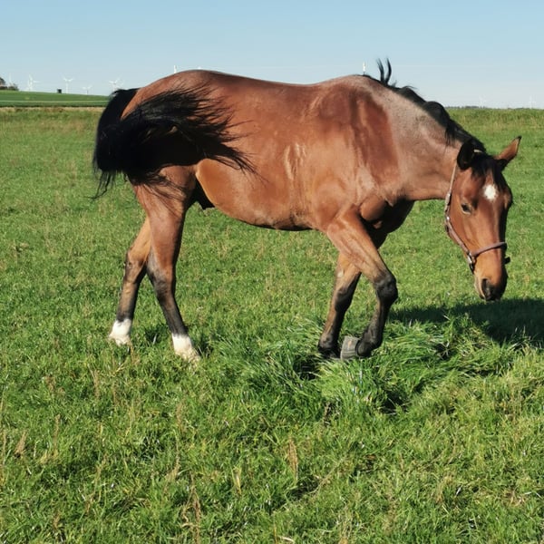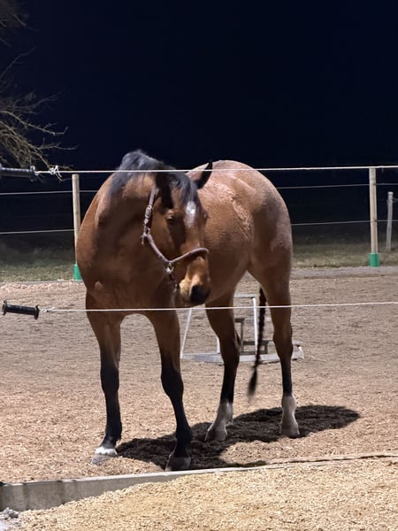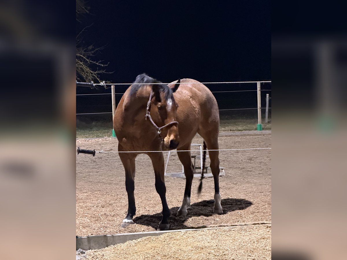 Almost 6-year-old Hancock-bred Quarter Horse gelding Born: May 10, 2020 Bay Roan Height: approximately 15.5 hh Sire: MJM Saltys Blue Ezra Dam: Jacs Arizona Girl *Solid basic training *Never been sick, lame, or had any issues *Regular dental care *All vaccinations up to date *Regular deworming *Consistently shod and trailer-friendly, calm in the stable and at the blacksmith Jac is a nearly 6-year-old Hancock-bred Quarter Horse gelding. He was started at 3.5 years old, has a solid foundation, and is completely unspoiled. In the field, Jac is reliable and easily handled alone. In the riding arena and indoor school, he is attentive, eager to learn, and responds delicately to his rider’s aids. He is well-behaved and shows no vices. However, he is not suitable for beginners or children. He is ideal for the ambitious leisure rider and can also be further developed in higher-level recreational or show riding. The sale is purely due to personal and professional reasons, as I currently cannot give him the attention he deserves due to lack of time. Upon request, his Equiflex saddle can be purchased together. Serious inquiries are welcome, and I can send additional photos and videos. Location: 89537 Price: €11,900 negotiable Contact: 0170-4828343 Preferably via WhatsApp