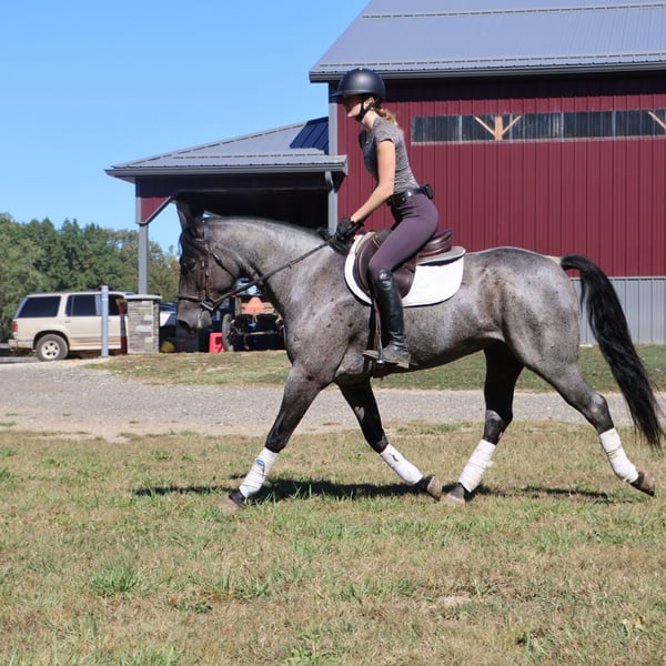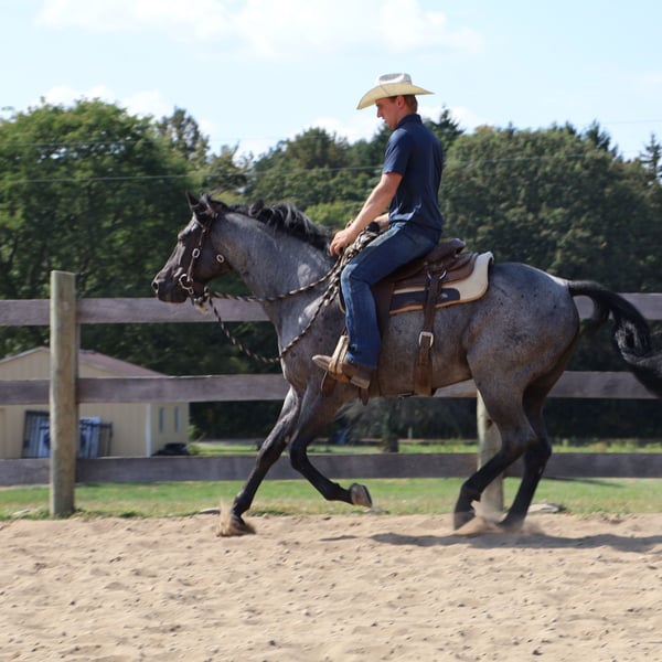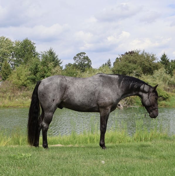 ♦️ 𝐭𝐡𝐞 𝐀𝐌𝐄𝐑𝐈𝐂𝐀𝐍 𝓕𝓪𝓵𝓵 𝓒𝓵𝓪𝓼𝓼𝓲𝓬 ♦️ Happening now thru MONDAY | OCTOBER 20th - Available EXCLUSIVELY on HorseBid's website! For more details and to register visit: www.Horsebid.com CONSIGNOR CONTACT: Philip Bontrager's horsemanship 989-387-7441 LOCATION: Howell MI BREED: Quarter horse REGISTERED: No COLOR: Blue roan HEIGHT: 15.1 AGE: 6 GENDER: Gelding Meet Ocho! Ocho is a 7yr old beautiful blue roan grade Quarter horse gelding. He stands 15.1hh and weighs around 1,100 lbs. Ocho rides english and western. He rides good in the arena and outside. Ocho is good with arena work, he lopes circles,takes both leads,and is soft in the bridle. He has a nice walk, trot, and canter. Ocho loads, clips, and baths good. While Ocho is not a beginners he has absolutely no buck in him. He is an all around riding horse for anyone that knows how to ride. He enjoys going on a trail or road ride. Ocho is very friendly and easy to catch in the field. With his beautiful blue roan coat he will stand out wherever you take him. For more information or to schedule a visit please Call Phil @ 989-387-7441.