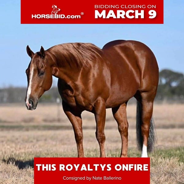 ℳ𝒶𝓇𝒸𝒽 ♦️𝐑𝐈𝐃𝐄𝐑'𝐒 𝐂𝐇𝐎𝐈𝐂𝐄♦️ Happening now thru MONDAY | MARCH 9th - Available EXCLUSIVELY on HorseBid's website! For more details and to register visit: www.Horsebid.com Athletic and cowy—quick-footed, honest, and stays hooked. Arson is ideal for someone wanting a proven horse-whether you’re looking to step up divisions, haul consistently, or add a solid, dependable cutter to the barn he’s the man for the job. He does currently have tail extensions. Please Call Nate Ballerino at 254-716-9588 with any questions. Nation Wide Shipping can be arranged.